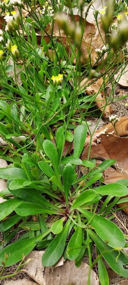 ![]() 上面照片:陳維琪拍攝 (莖節甚短;單葉叢生,倒披針形,全緣,葉基和葉脈或呈紅色) |