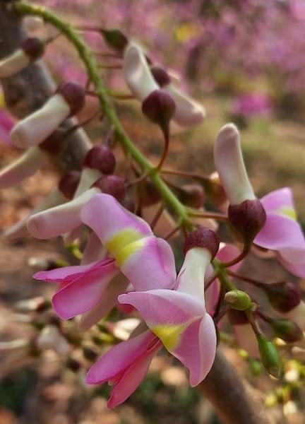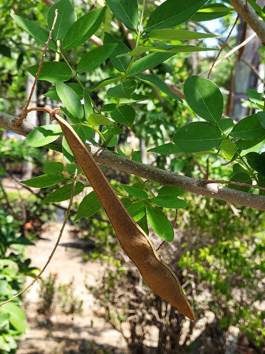 (栽培種;原生於美洲墨西哥至巴西一帶;台灣物種名錄標名南洋櫻,別名格力豆、假巴豆、南美櫻;維基百科標名格力豆,別名南洋櫻(並非原生於南洋);喬木;奇數羽狀複葉,互生;小葉近對生,可達7對(或更多),卵形、長卵形至橢圓形,全緣;總狀花序,腋生或頂生;花冠蝶形,粉紅色;夾果扁條狀)