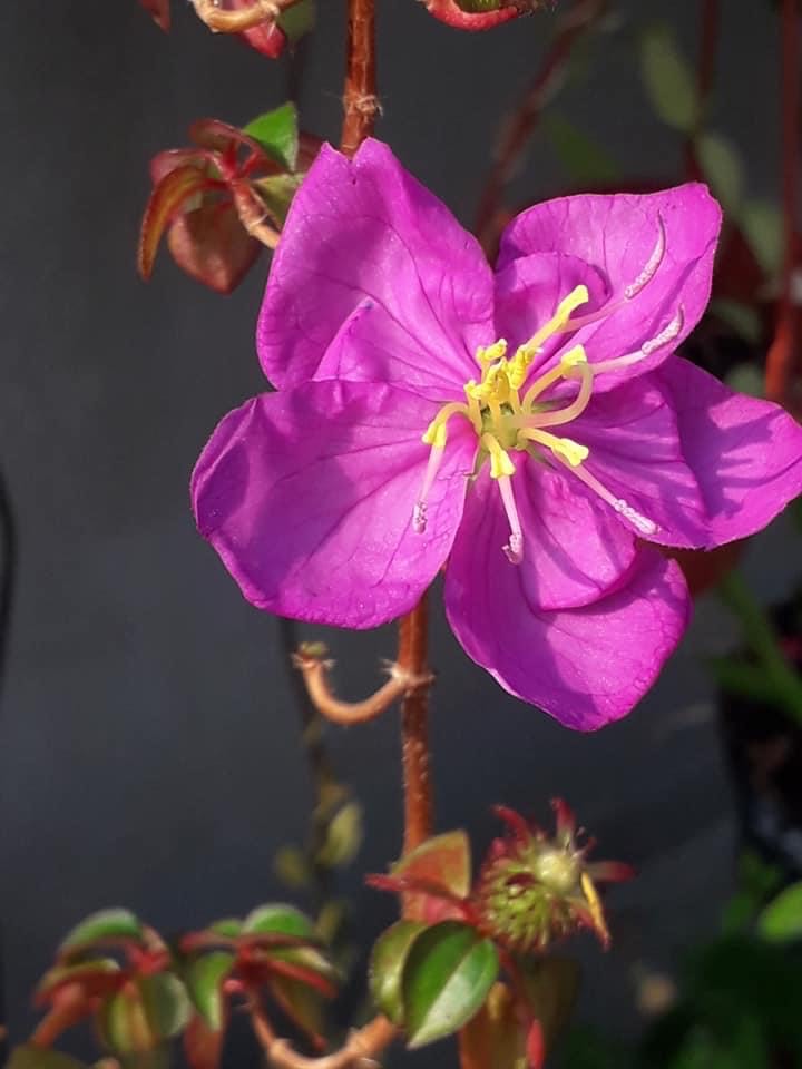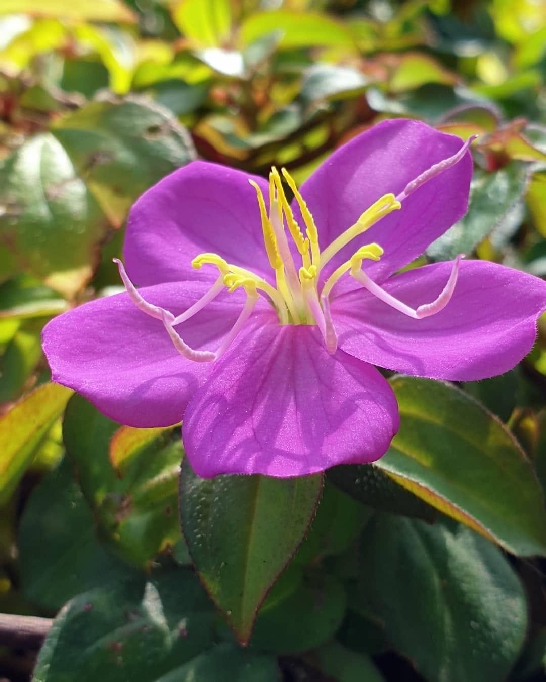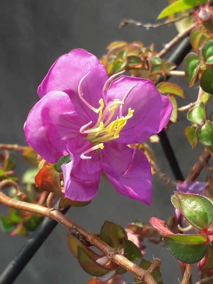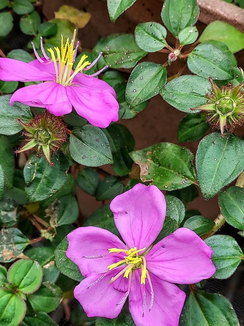 (栽培種;台灣物種名錄將蔓性野牡丹的學名標成 Tibouchina elegans,此學名在世界植物在線 POWO ,同 Pleroma elegans,查之於 POWO 和維基百科的照片,皆與蔓性野牡丹不相符,推定為誤勘的學名)