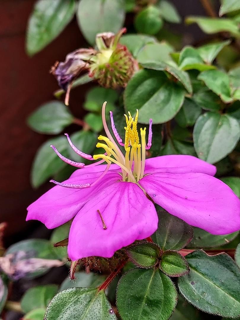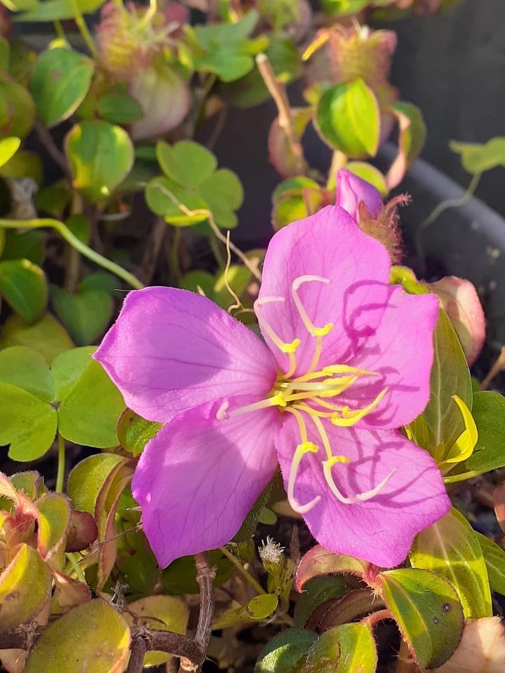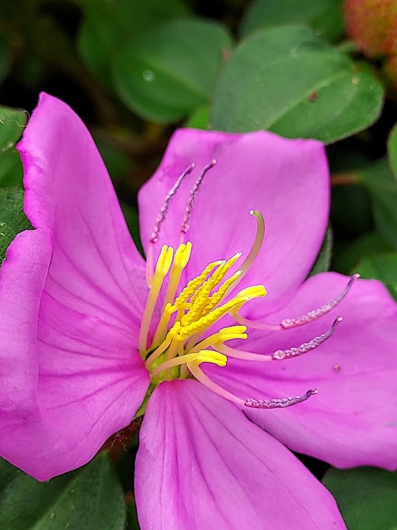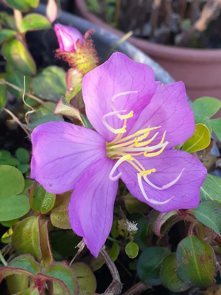(栽培種;台灣物種名錄將蔓性野牡丹的學名標成 Tibouchina elegans,此學名在世界植物在線 POWO ,同 Pleroma elegans,查之於 POWO 和維基百科的照片,皆與蔓性野牡丹不相符,推定為誤勘的學名)