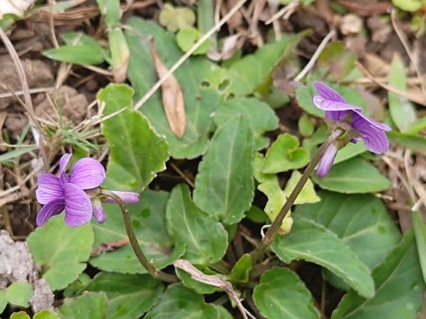 (原生種;原生於台灣、日本至中國大陸至東南亞一帶;世界植物在線 POWO 標示 Viola inconspicua subsp. nagasakiensis = Viola inconspicua,皆為有效學名;台灣物種名錄標名小菫菜,別名微菫菜、小堇菜;多年生草本;具走莖;根生葉叢生,葉片三角狀,基部略呈心形,圓齒緣,具長柄;花冠紫色,具長梗,花距直條形,略過花梗;側瓣基部內側有毛;蒴果橢圓形,3瓣,成熟開裂,能彈射種子,自力傳播)