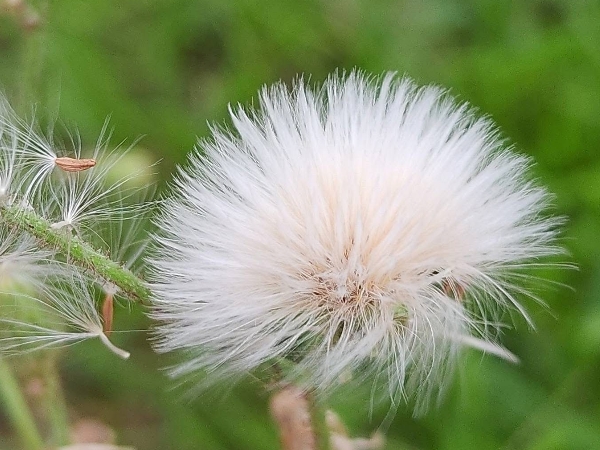 ![]() 上面照片:林美燕拍攝 (瘦果長橢圓形,扁平,棕色;冠毛白色,絲狀;苞片披針形) |