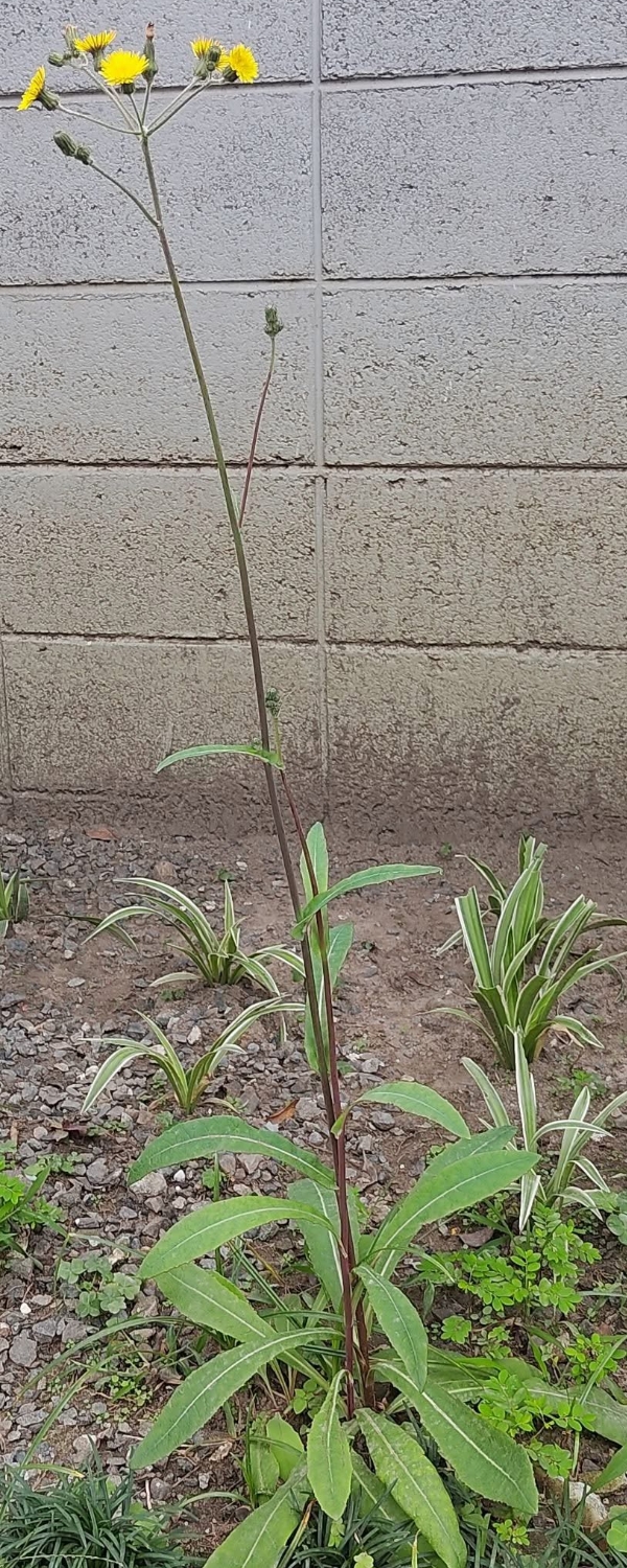 (歸化種;世界植物在線 POWO 附有照片(相符),標示原生於歐亞大陸的溫帶及寒帶;台灣物種名錄標名苦苣菜,附有照片,標示為原生種;維基百科和中國植物智標名苣蕒菜(不稱苦苣菜);多年生草本;莖直立,株高可達2公尺以上(瘦高狀);莖常呈紫紅色,表面光滑或疏生腺毛;單葉互生,倒披針形至披針形,或裂成魚骨狀,全緣或細鋸齒緣 (下部葉倒披針形,部葉耳狀抱莖披針形);頭狀花序,頂生,呈繖房狀排列;頭花徑約2公分,小花全為舌狀花,黃色(最外層的小花背面或具紅色條紋);總苞片多層,覆瓦狀排列,密布腺毛;瘦果長橢圓形,扁平,深褐色;冠毛白色,絲狀)