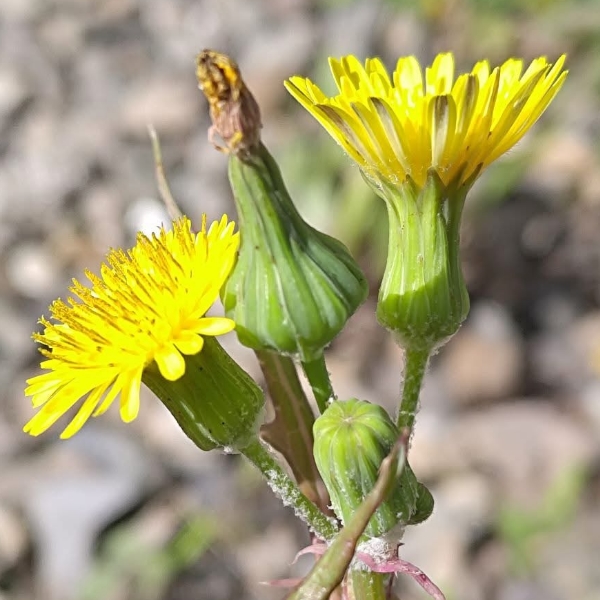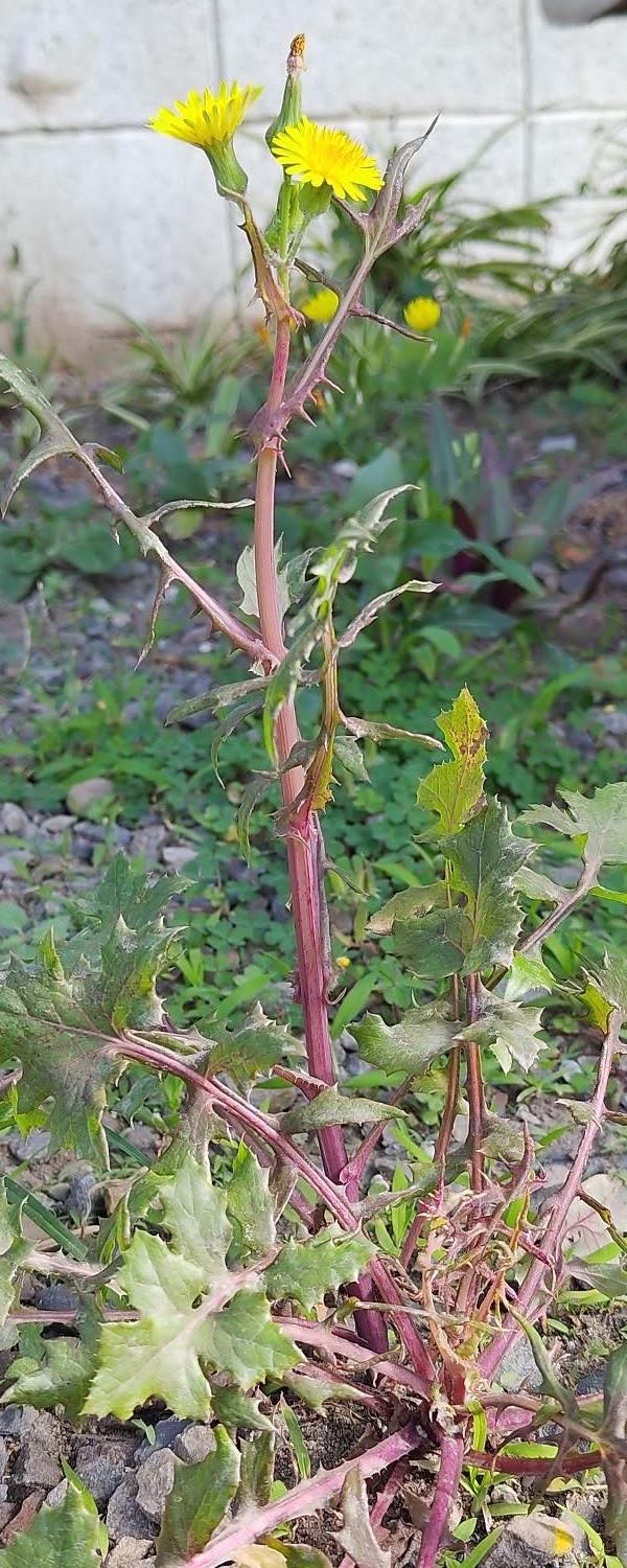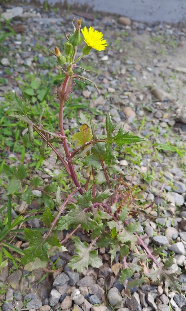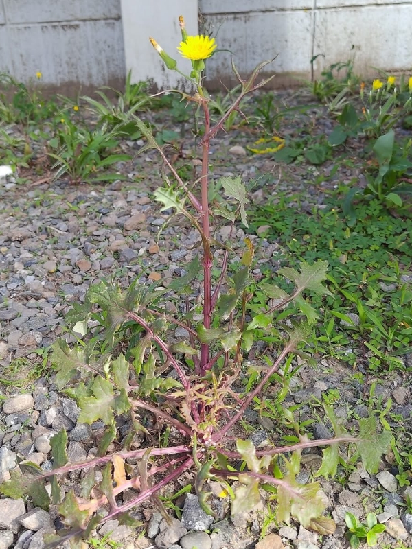 (歸化種;世界植物在線 POWO 附有照片(相符),標示原生於歐洲至非洲北半部;台灣物種名錄標名苦滇菜,別名苦菜,附有照片;維基百科標名苦菜,別名苦苣菜、滇苦蕒菜、苦滇菜;香港柴娃娃植物網和中國植物智標名苦苣菜,別名苦蕒菜(台灣所稱的苦苣菜是指同屬的不同物種);多年生草本;莖直立,常呈紫紅色,光滑或疏被細刺毛或腺毛;單葉互生,常呈魚骨狀分裂,尖刺鋸齒緣,上部葉耳狀抱莖;頭狀花序,頂生,呈繖房狀排列;頭花徑約2公分,小花全為舌狀花,黃色;總苞多層,或疏被細刺毛;瘦果倒長卵形,扁平,棕色;冠毛白色,絲狀)