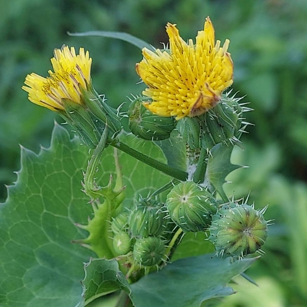 ![]() 上面照片:林美燕拍攝 (上部葉耳狀抱莖,尖刺鋸齒緣) |