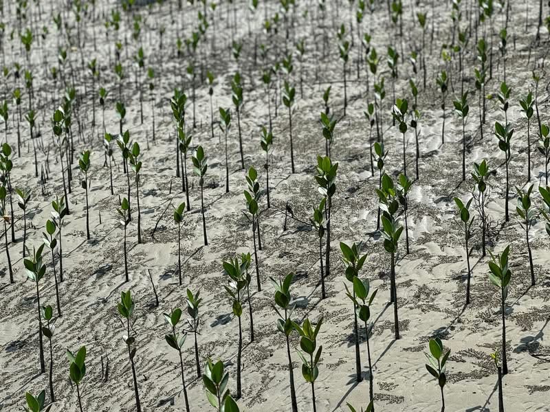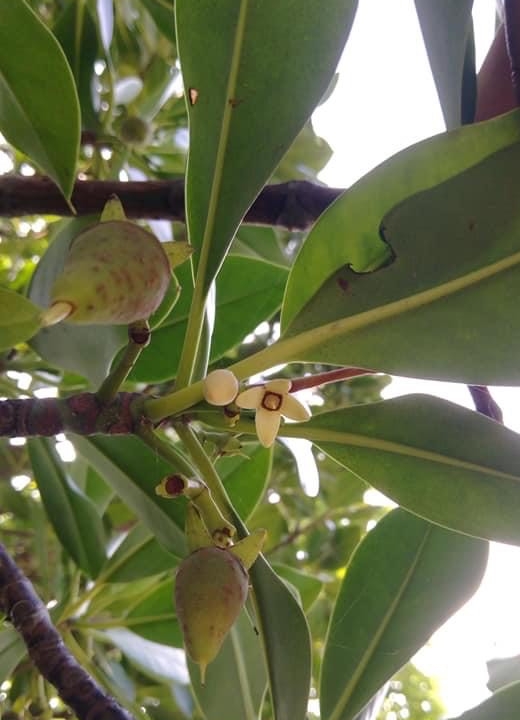 (原生種;原生於台灣、中國大陸至澳洲及印度;台灣物種名錄標名紅海欖,別名五梨跤,附有照片;小喬木或灌木;基部有很發達的支柱根或呼吸根;單葉對生,卵形、橢圓形至倒卵形,全緣,葉尖具芒狀突尖;花序腋生,有花數朵;花瓣4枚,披針形,被絲狀毛;花萼4枚,淡黃色至綠色,三角形,與果實宿存;胎生苗長15-30公分,長棍棒狀;有固土護岸功能)