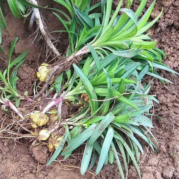 (台灣特有種;世界植物在線 POWO 標示僅產於台灣;多年生草本;主要產於北部及東北部濱海地區;約4月綻放;莖直立,單一,粗壯,低矮狀(適應海濱環境);單葉互生,披針形,抱莖,厚實,密集輪生狀;花朵於頂部腋生或頂生,單花或多花;花冠漏斗形,略微下垂;花被片6枚,白色,略向後捲,背面具6條紅褐色縱紋;雄蕊6枚,雌蕊柱頭3叉;蒴果圓筒形,3瓣狀,直立;種子多數,扁平,周圍具薄翅)