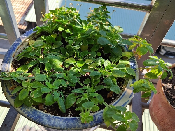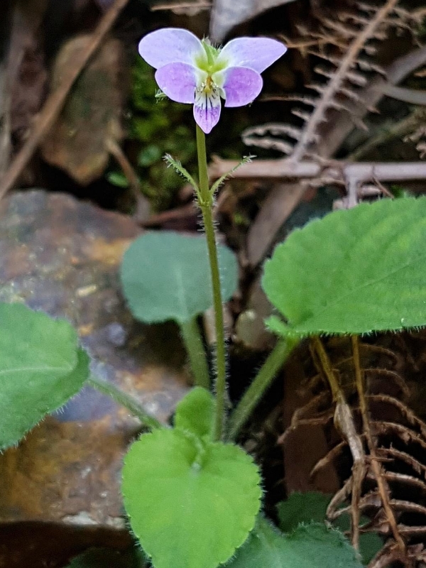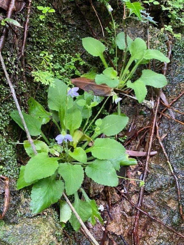 (原生種;台灣物種名錄標名茶匙黃;維基百科標名七星蓮,附有照片(花冠相似,植株型態有差異);一年生或多年生草本;全株被毛;具走莖;基生葉叢生呈蓮座狀,葉片卵形,長柄具翼;花朵單生,具長梗,頂生或腋生於走莖;花冠淡紫色;蒴果橢圓形,成熟三瓣裂,種子多數,卵球形,棕色)