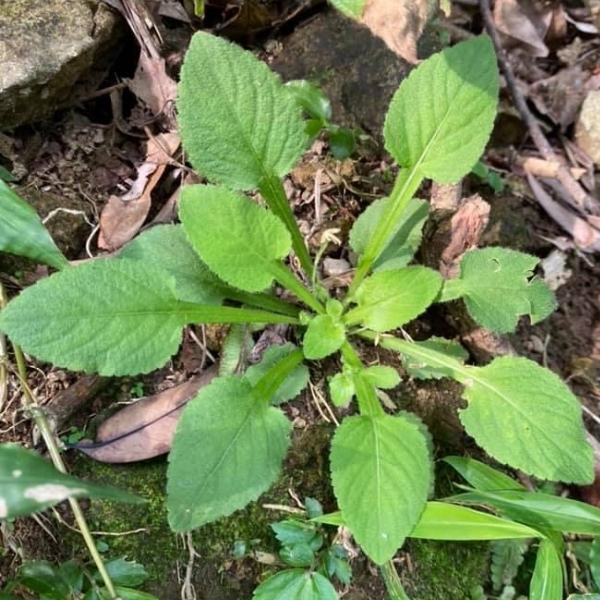 ![]() 上面照片:潘玉郎拍攝 (植株葉片叢生呈蓮座狀,葉片卵形,長柄具翼) |