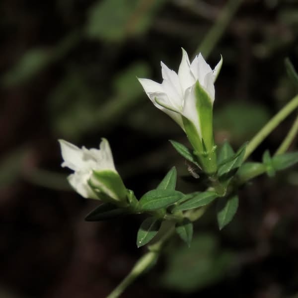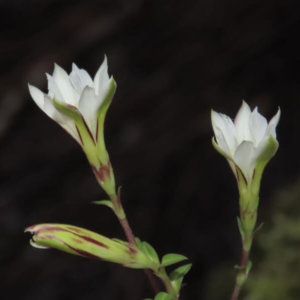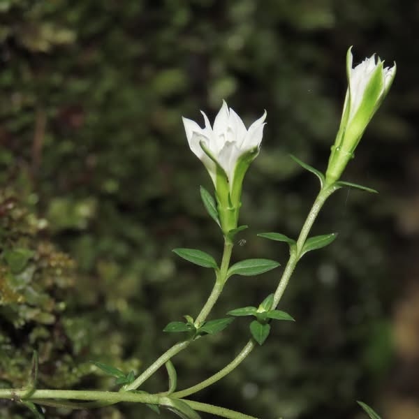(台灣特有種;花冠白色,花藥黃色或粉紅色,花萼裂片針刺狀,花心有黃斑,花徑約1.2~1.5公分;蒴果倒卵形,成熟時2瓣開裂,內有種子多數,褐色;本頁的黃斑、塔塔加和鴛鴦湖龍膽,尚未定論,僅供參考)