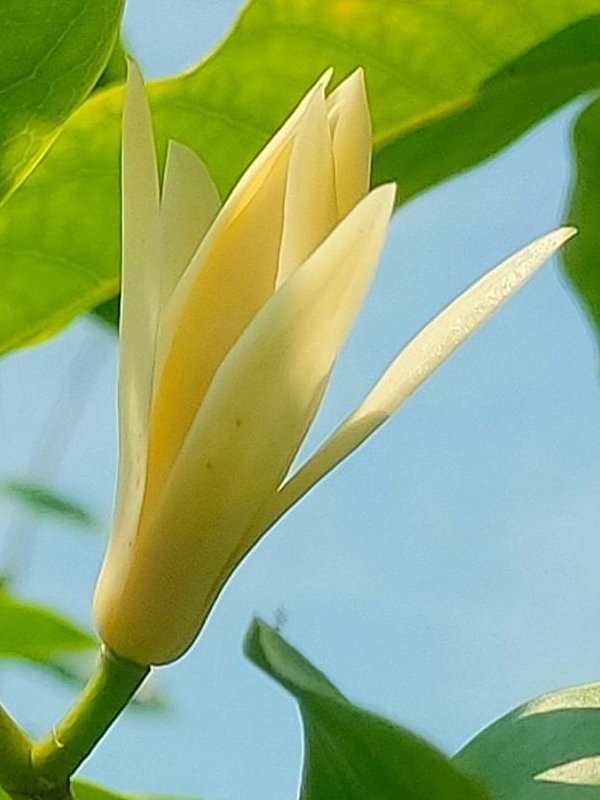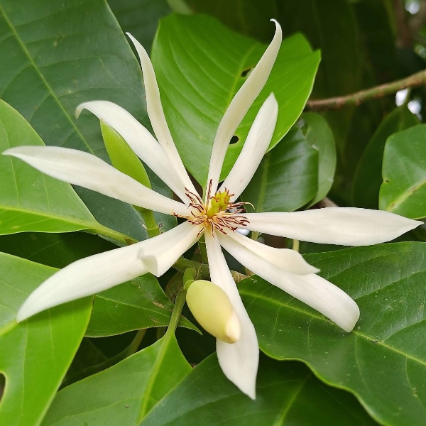 (栽培種;雜交種;原生於東南亞;台灣物種名錄標名白玉蘭;香港柴娃娃植物網標名白蘭;喬木;樹高可達15公尺以上;單葉互生,長橢圓形;花朵單生葉腋;花瓣10枚,白色,具濃郁香味;通常不結果)