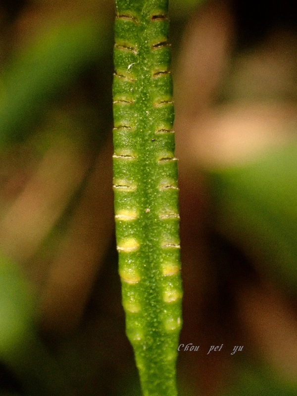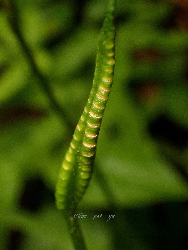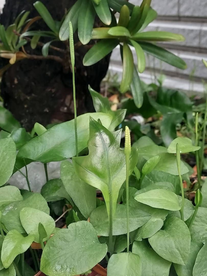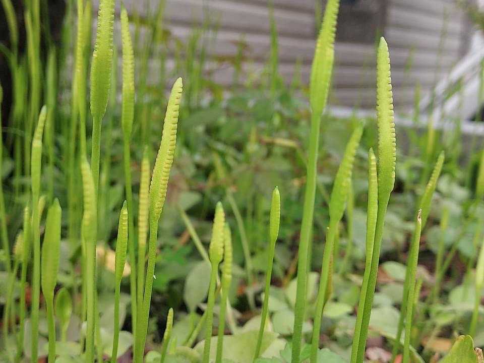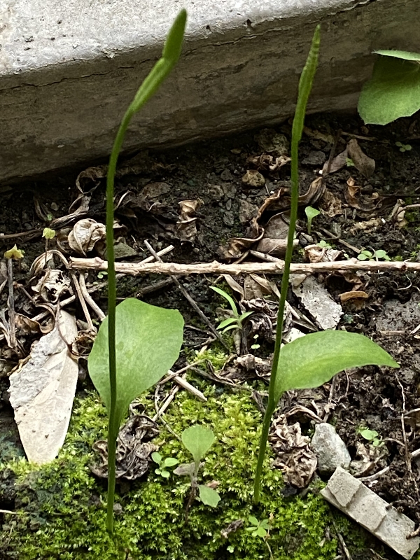 (原生種;原生於台灣、日本至印度和紐西蘭一帶;蕨類植物;台灣物種名錄標名銳頭瓶爾小草,別名鈍頭瓶爾小草(銳和鈍意思相反),附有照片;具走莖;單葉,卵形至長卵形,全緣)
