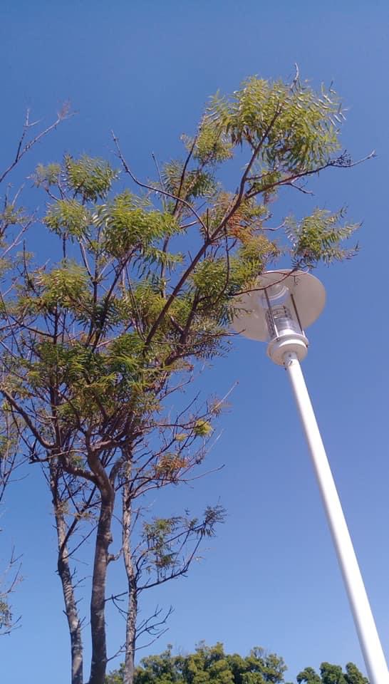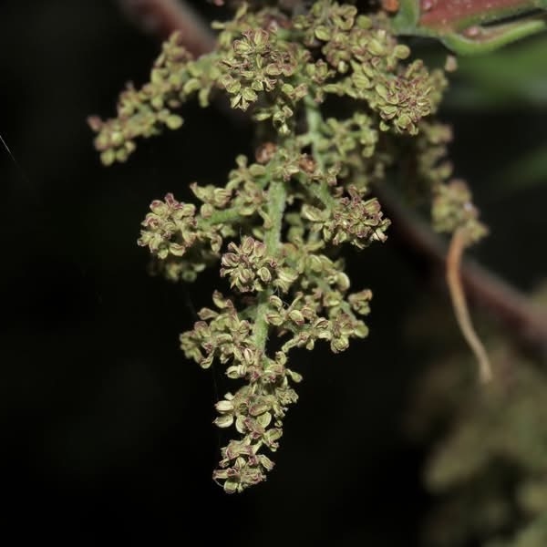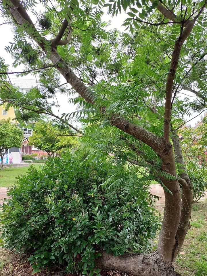 (原生種;原生於台灣、菲律賓、中國大陸至印度半島一帶;維基百科標名黃連木,別名爛心木;落葉中喬木,高可達20公尺;羽狀複葉,互生;小葉6~13對,基部歪斜,披針形至卵狀披針形,全緣,近無柄;雌雄異株,單性花,不具花花;雄花雄蕊5枚,無雌蕊;雌花柱頭3叉,無雄蕊;圓錐花序,腋生,花多數,甚小;雄花序排列緊密,雌花序排列疏鬆;核果卵球形,徑約0.5公分,初為綠色,後轉紅色,成熟紫黑色)