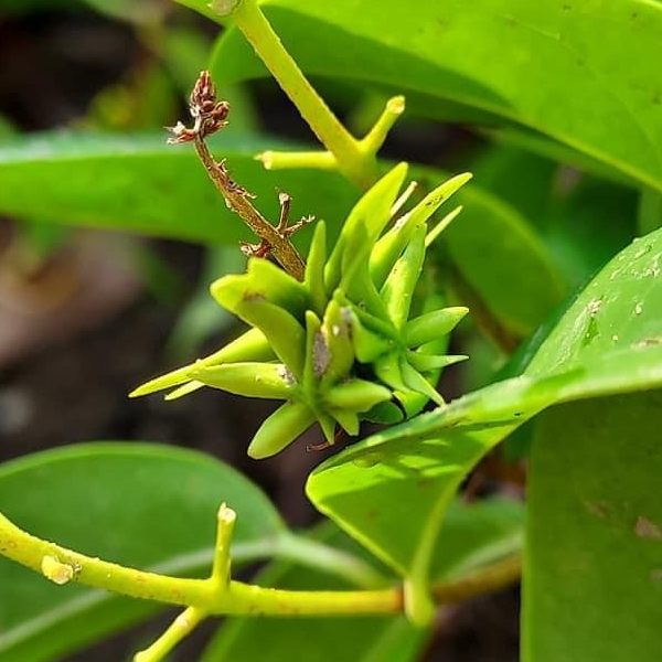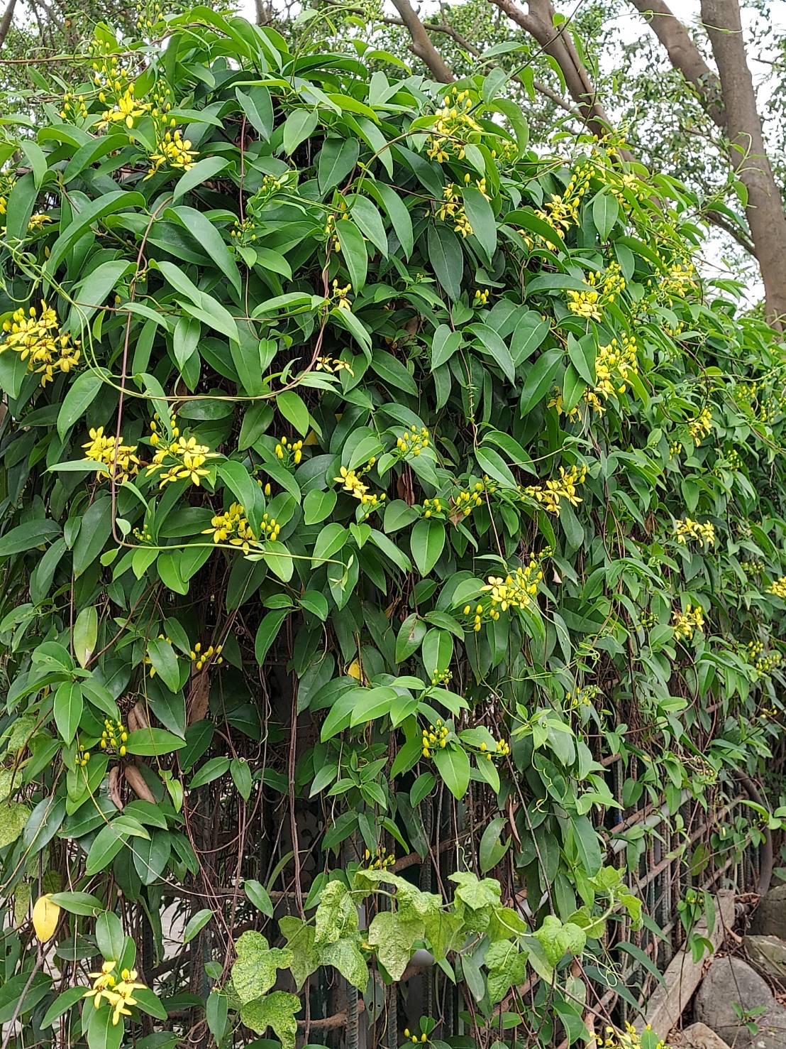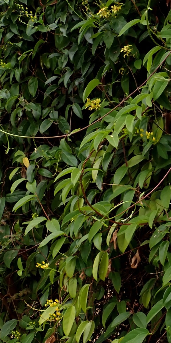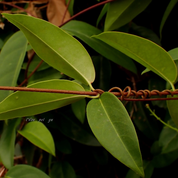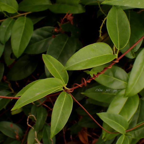 ![]() 上面照片:周佩玉拍攝 (木質藤本;單葉對生 (偶有互生),長卵形至披針形,全緣) |