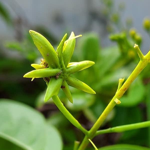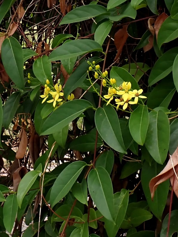(原生種;原生於台灣、中南半島至澳洲一帶;台灣物種名錄標示瀕危,應指野生數量稀少;香港柴娃娃植物網標名三星果;木質藤本;單葉對生 (偶有互生),長卵形至披針形,全緣;總狀花序,腋生或頂生;花瓣5枚,黃色,具瓣柄;雄蕊黃色至紅色;翅果星狀,通常有三顆果實聚在一起,因此名為三星果藤)