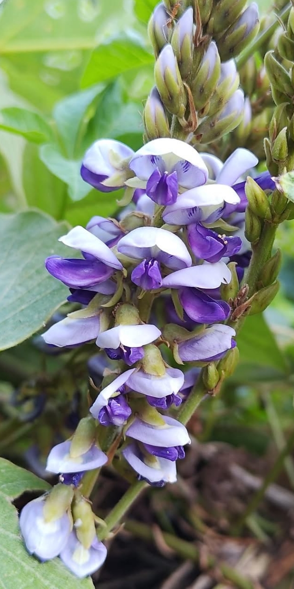 ![]() 上面照片:陳玉琴拍攝 (總狀花序,腋生,花朵密集;花冠蝶形,粉紅色至紫藍色) |
