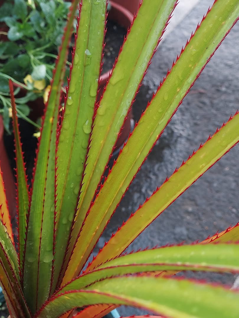 (栽培種;原生於馬達加斯加島;香港柴娃娃植物網標名扇葉露兜樹;雌雄異株;常綠灌木或小喬木狀,株高可達8公尺;主幹下部具粗大氣根,狀似章魚;葉深綠色,硬革質,叢生於枝端,線狀披針形,葉緣和葉背中肋具紅色銳鉤刺;聚合果球形)