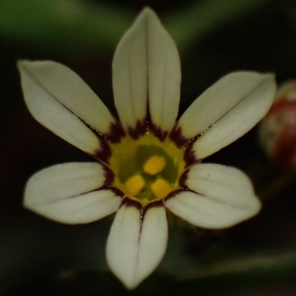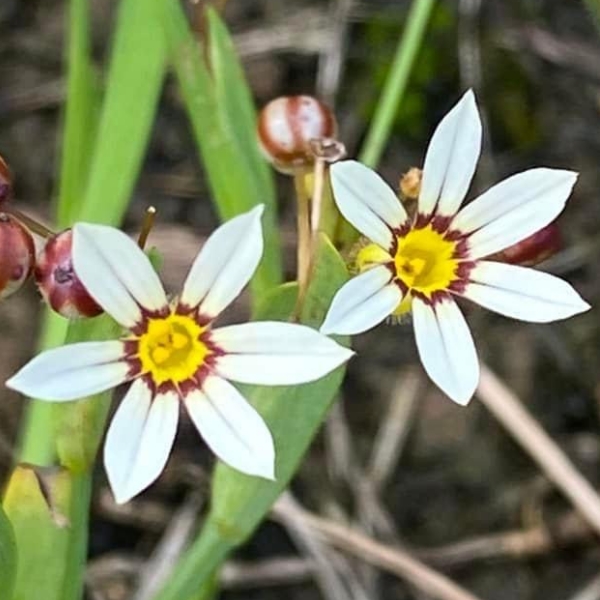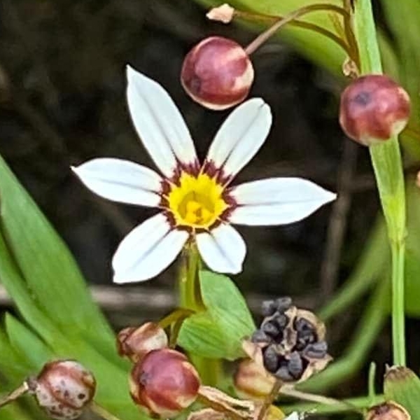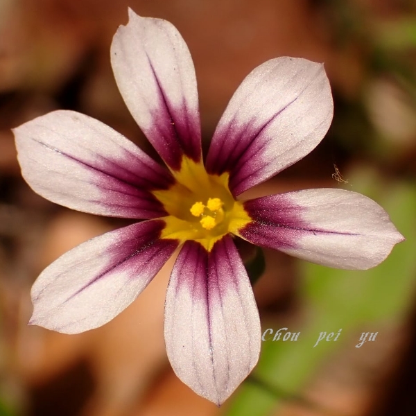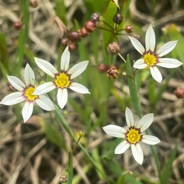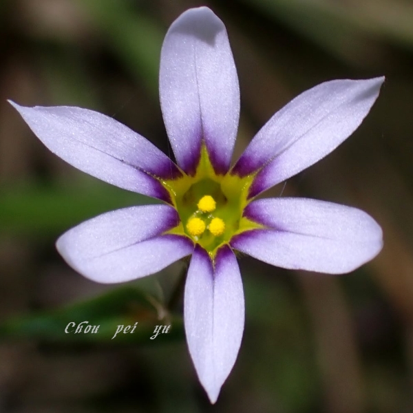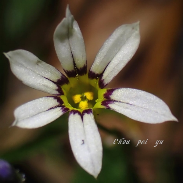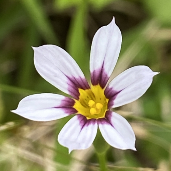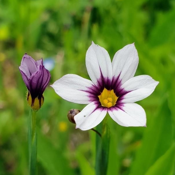 (維基百科英文版的庭菖蒲 Sisyrinchium micranthum,中文翻譯如下:Sisyrinchium micranthum,俗稱一年生藍眼草、藍豬根、仙女星和條紋蘆葦葉,是一種野花。它是鳶尾科鳶尾科的一種類似草的物種。它原產於墨西哥、中美洲和南美洲,並在其他地方廣泛歸化。花的直徑在10到20毫米之間。通常,花是白色的,中心是藍色到紫色的,但也可以開花其他顏色,如黃色、粉紅色或紫色。緊隨其後的是圓形的3到8毫米的棕色膠囊,包裹著深棕色的種子)