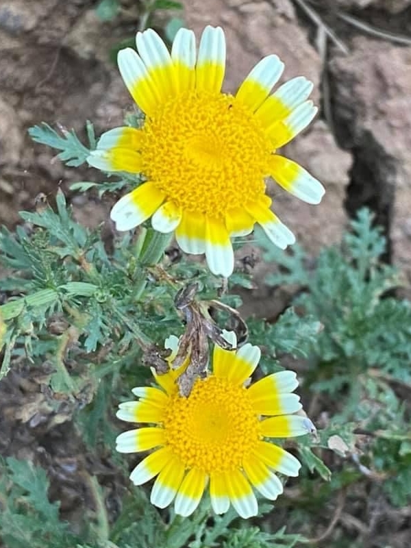 ●茼蒿(Glebionis coronaria、Chrysanthemum coronarium) (栽培種;原生於地中海附近一帶;世界植物在線 POWO 標示 Chrysanthemum coronarium = Glebionis coronaria,皆為有效學名,附有照片(相符);Chrysanthemum = 菊屬;Glebionis = 茼蒿屬;台灣物種名錄標名茼蒿,標示學名 Chrysanthemum coronarium;維基百科標名茼蒿,別名茼萵、春菊、艾菜、打某菜、皇帝菜,標示學名 Glebionis coronaria)