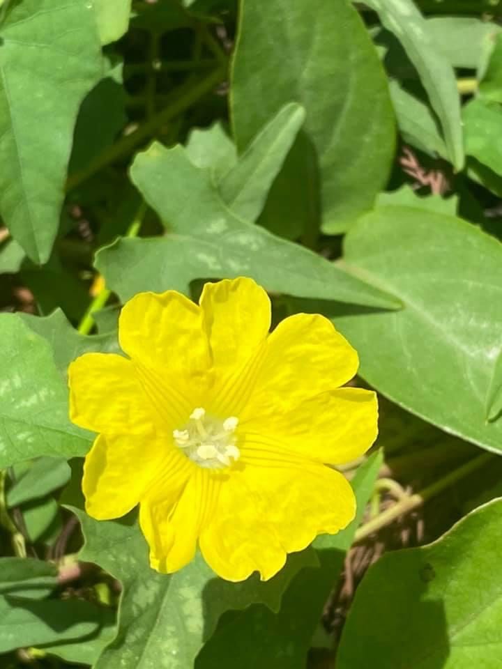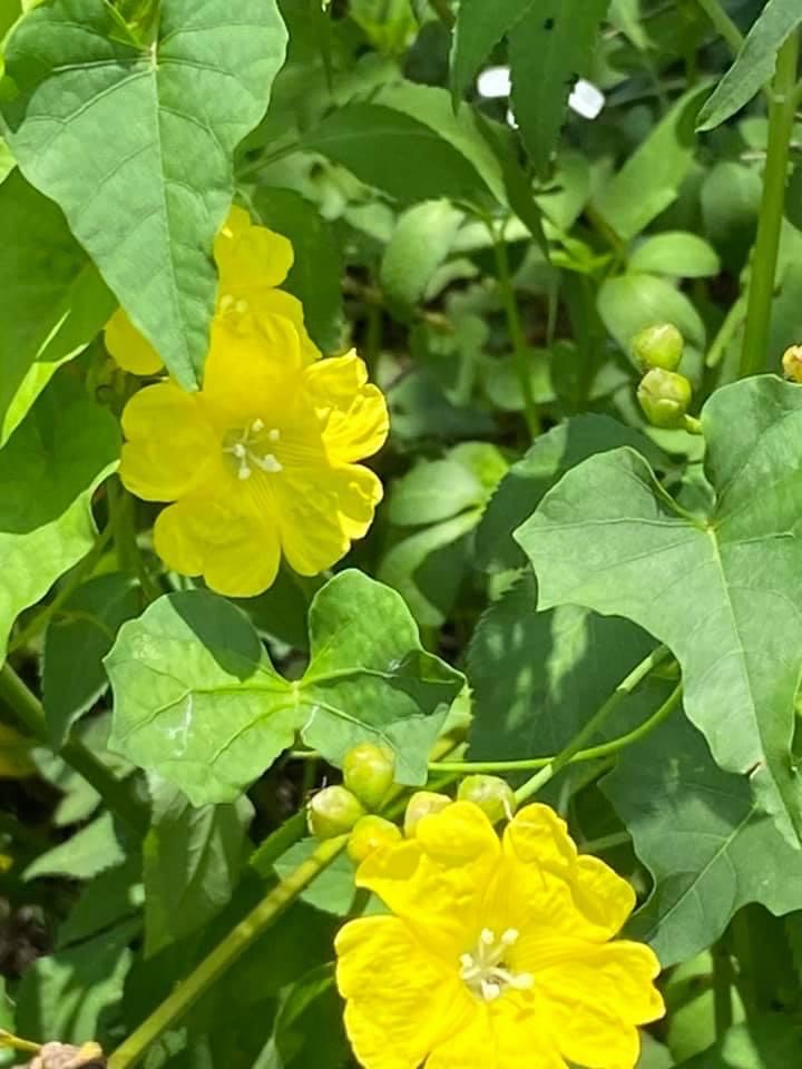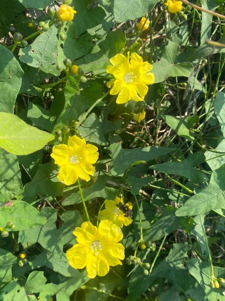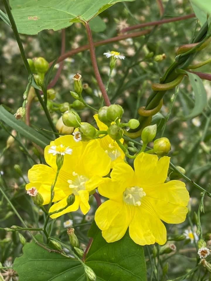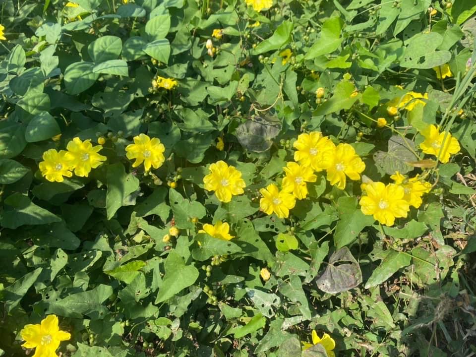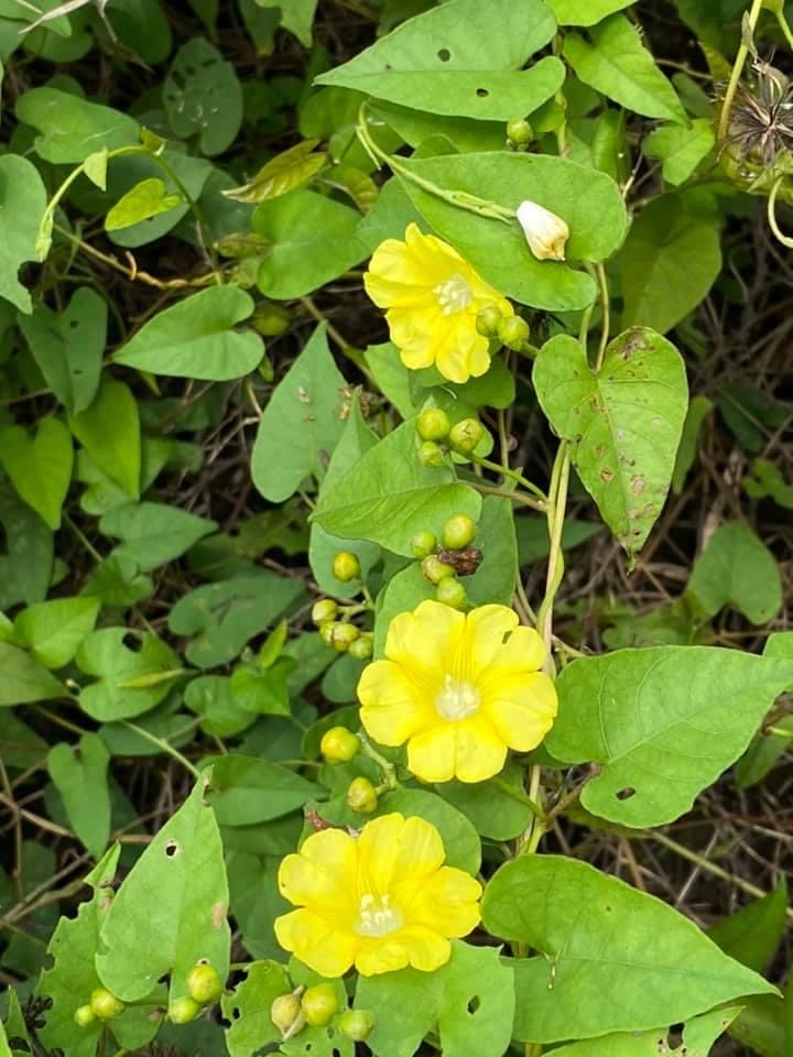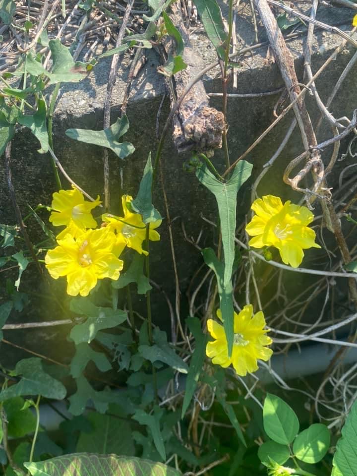 (原生種;原生於台灣菲律賓、印度至澳洲一帶;纏繞性藤本;單葉互生,心形至戟形,長約5~10公分;花朵單生或成聚繖花序,腋生;花冠漏斗形,花瓣5枚,黃色,花徑約2公分(比卵葉菜欒藤的花形大兩倍以上);雄蕊5枚,雌蕊柱頭單一;蒴果扁球形)