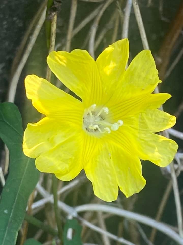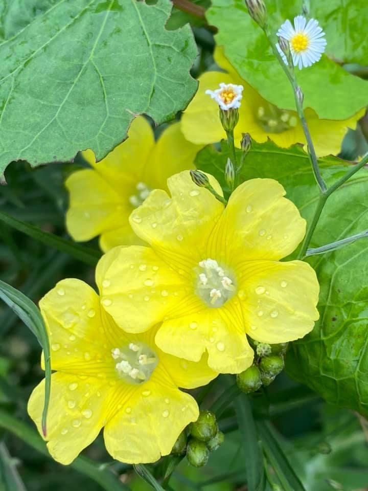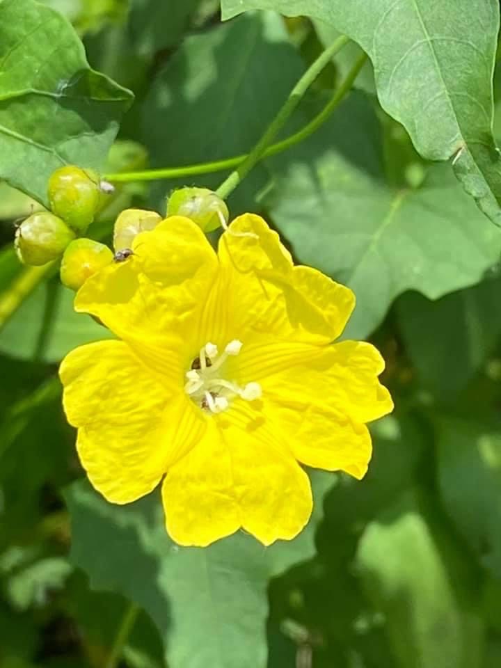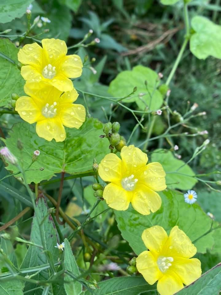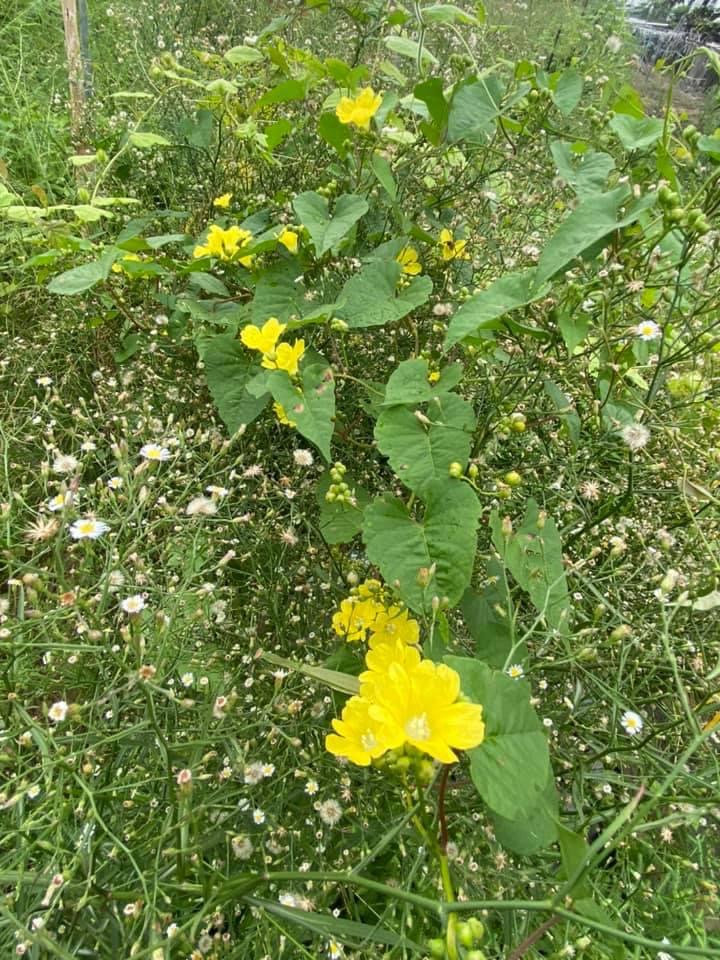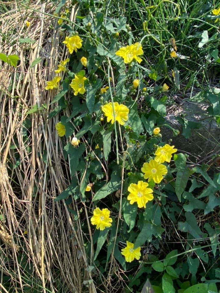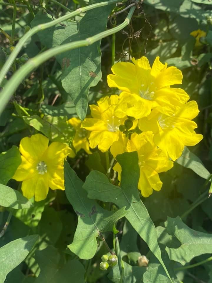 (原生種;原生於台灣菲律賓、印度至澳洲一帶;纏繞性藤本;單葉互生,心形至戟形,長約5~10公分;花朵單生或成聚繖花序,腋生;花冠漏斗形,花瓣5枚,黃色,花徑約2公分(比卵葉菜欒藤的花形大兩倍以上);雄蕊5枚,雌蕊柱頭單一;蒴果扁球形)