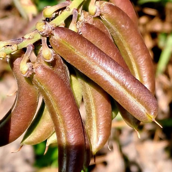 (原生種;原生於台彎、中國大陸至非洲;世界植物在線 POWO 附有照片(相符);灌木;株高可達2公尺;三出複葉,互生;小葉倒卵形,先端鈍圓或微凹;總狀花序,頂生;花冠黃色;莢果長筒形,長約4公分,花柱宿存)