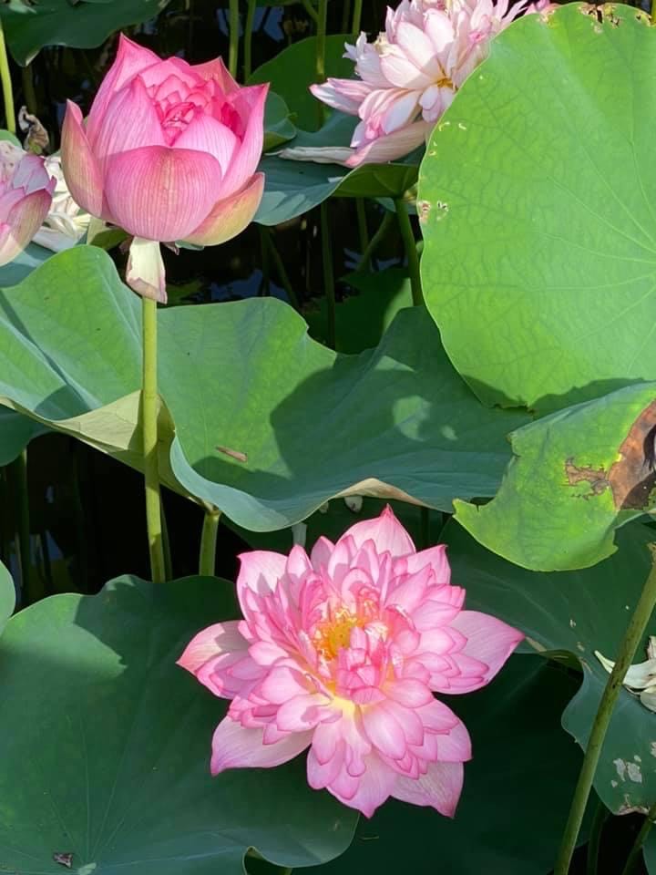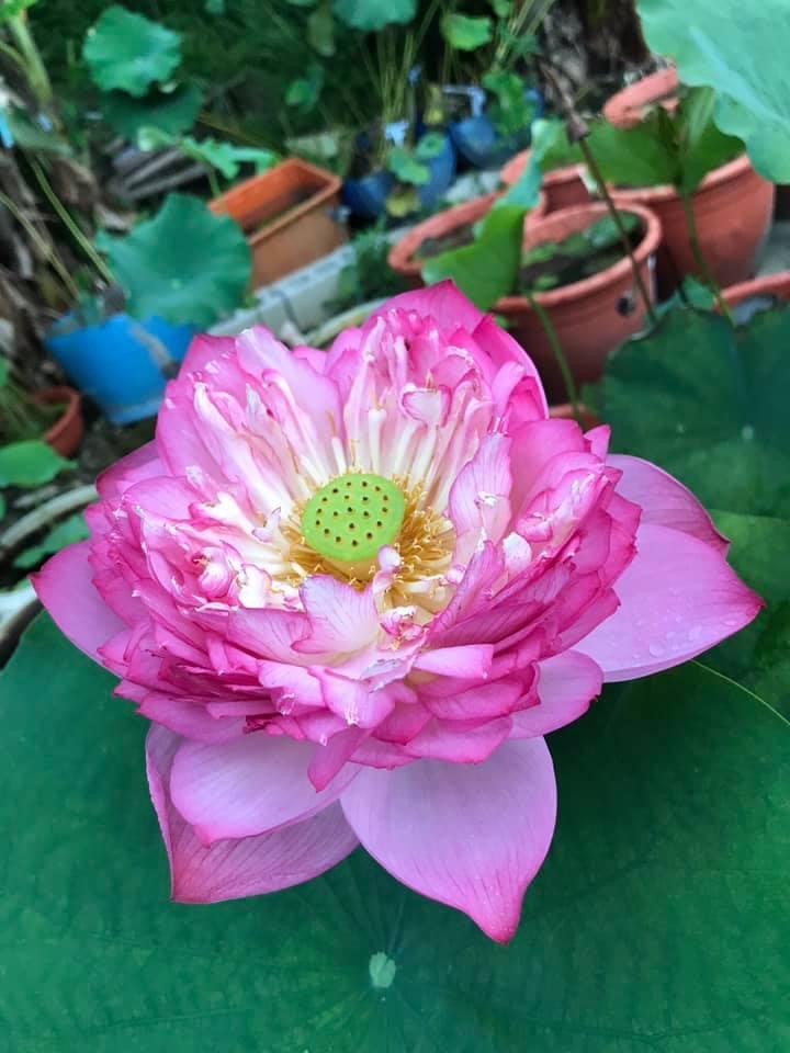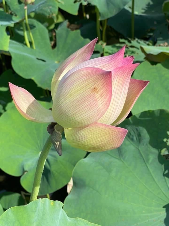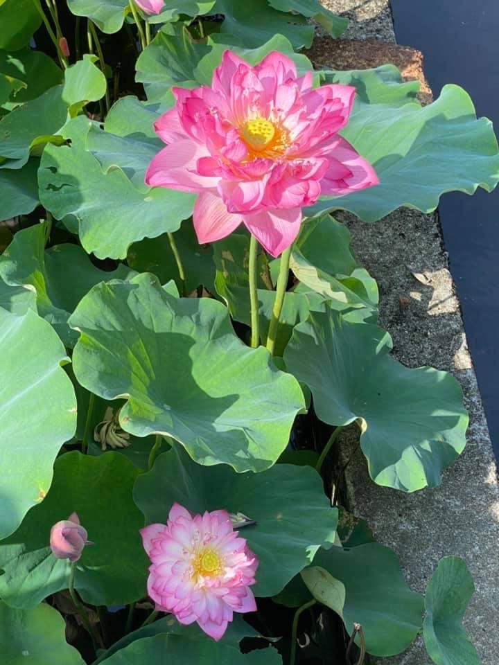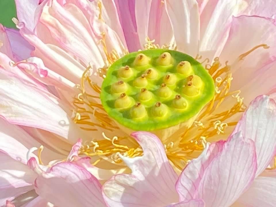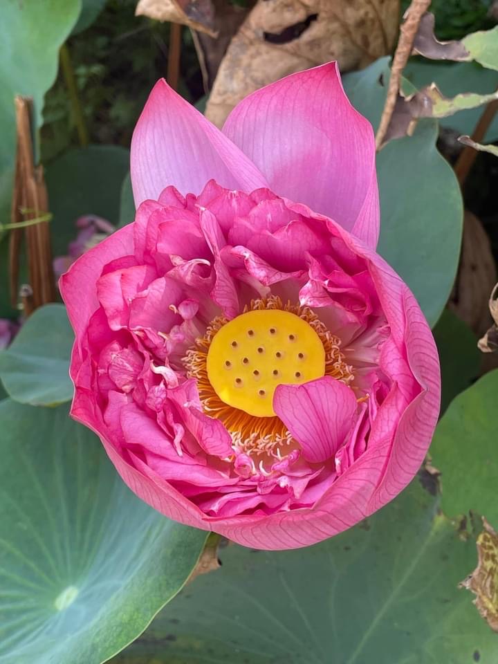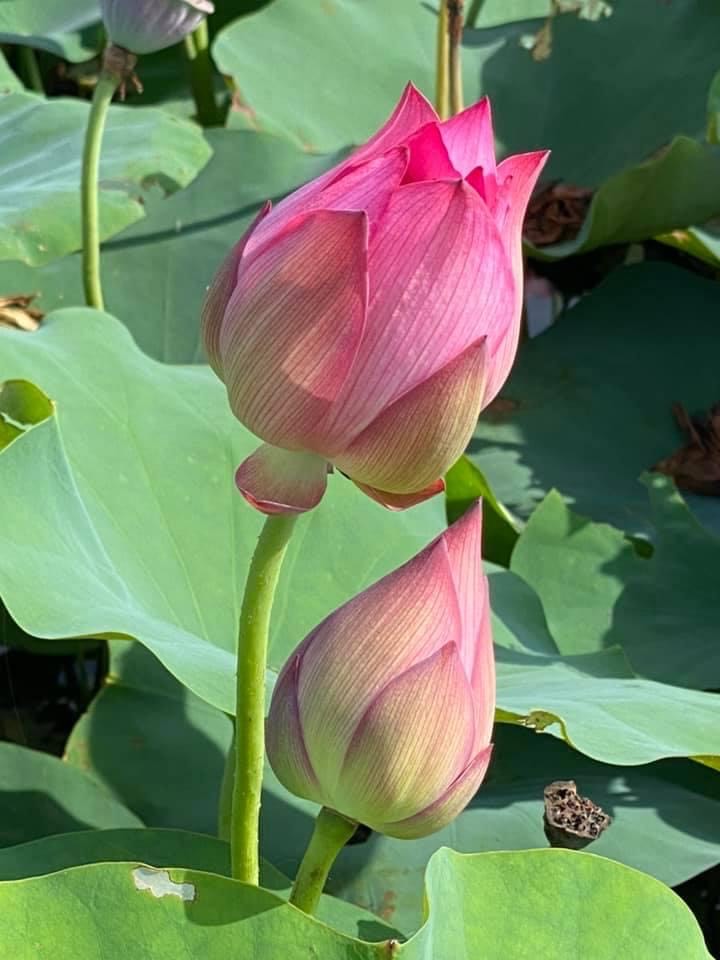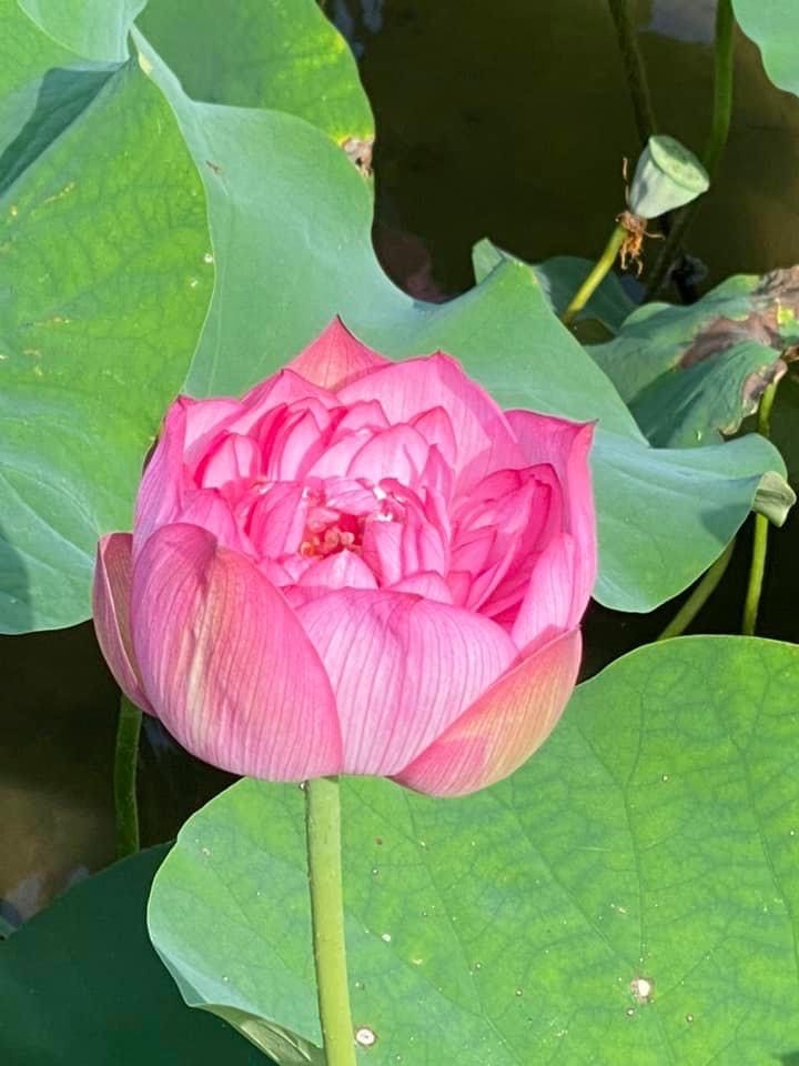 (發現花苞突破葉面,開花後的蓮蓬在葉面上)
