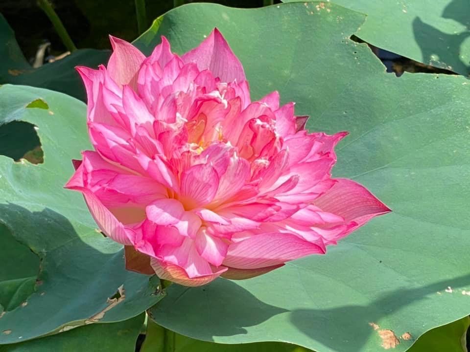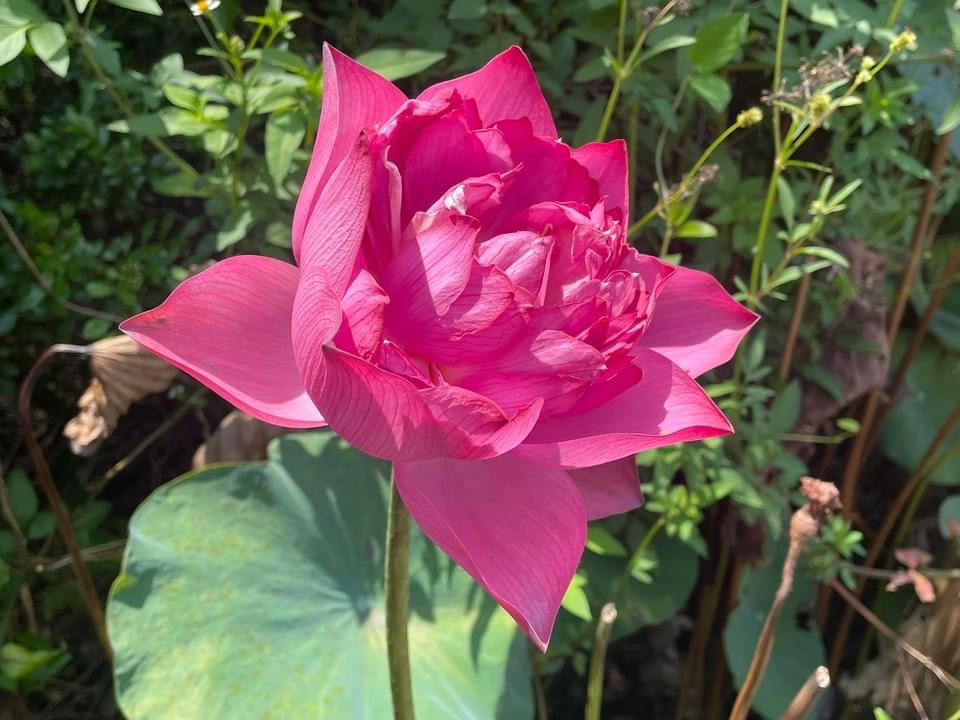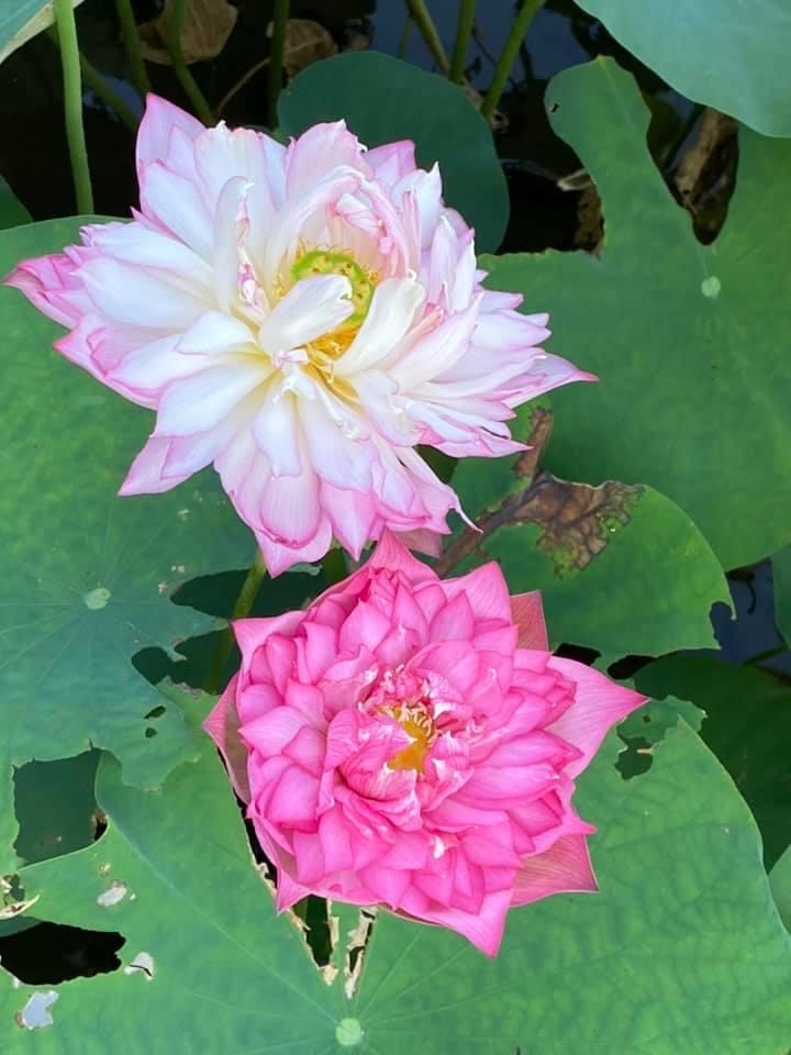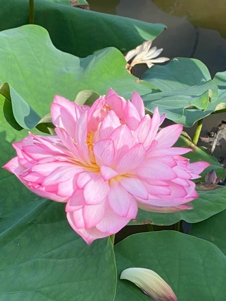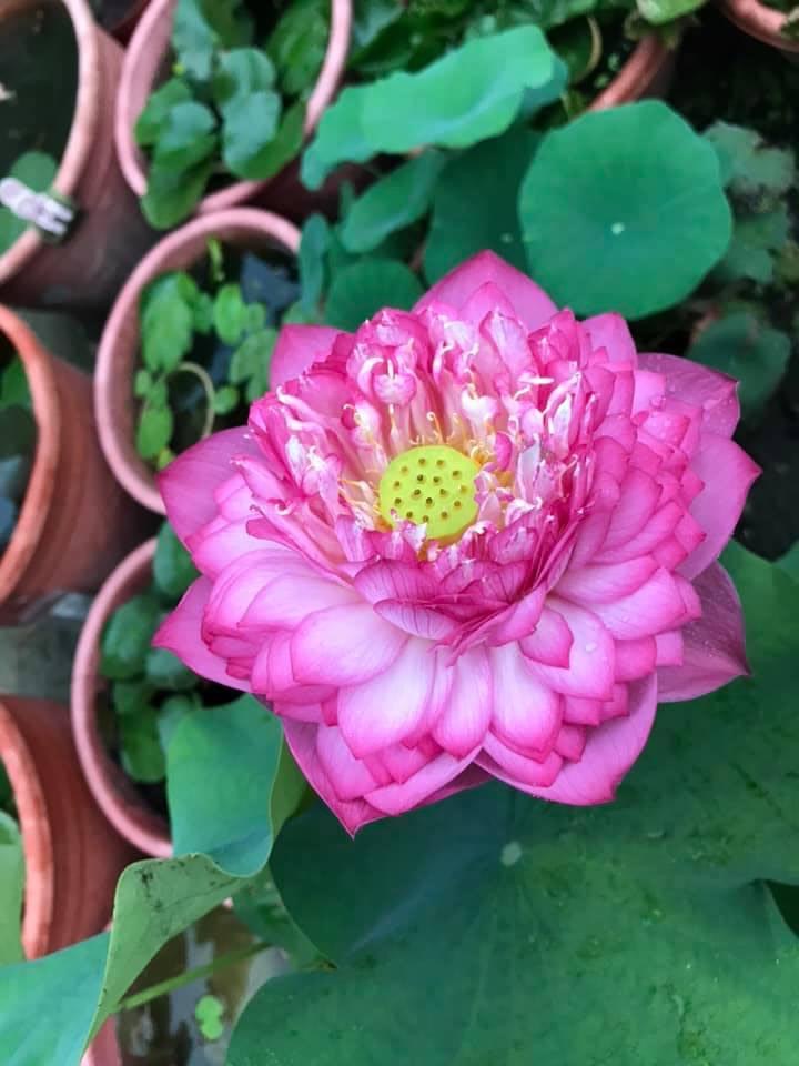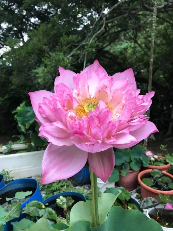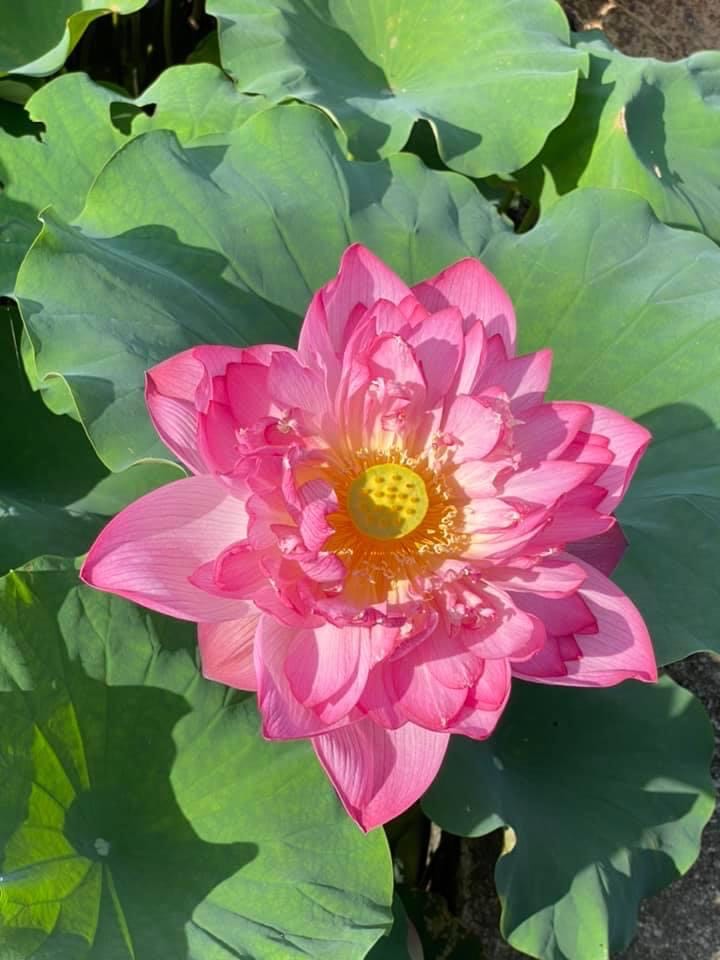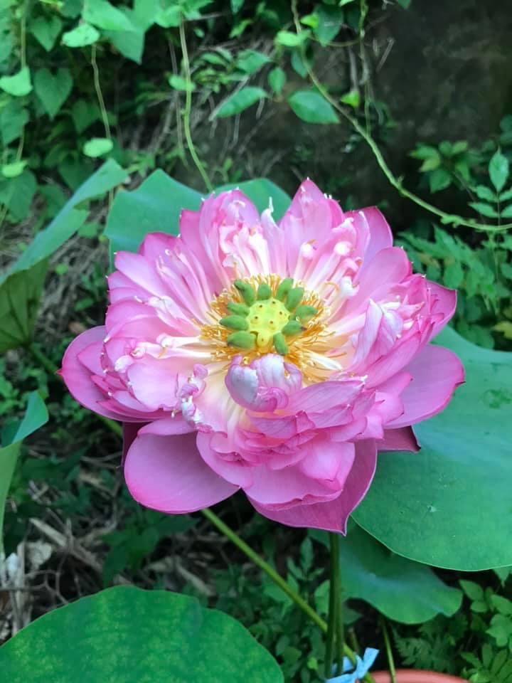 (發現花苞突破葉面,開花後的蓮蓬在葉面上)