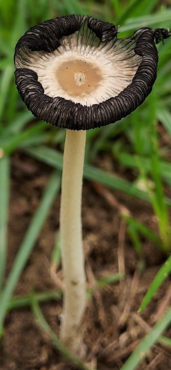 ![]() 上面照片:陳維琪拍攝 (成熟後傘緣會自溶,因孢子黑色所以呈現墨汁狀) |