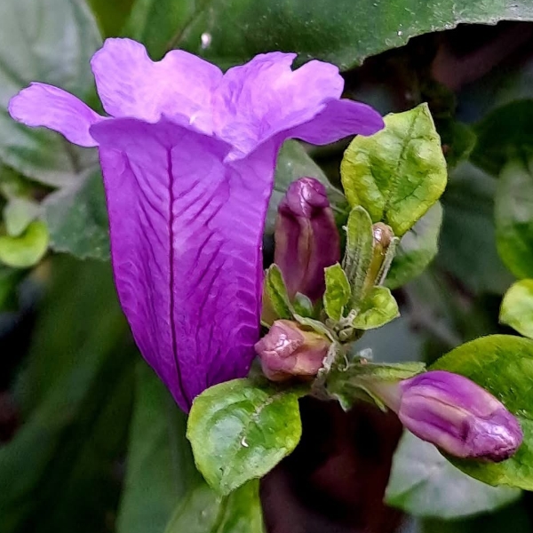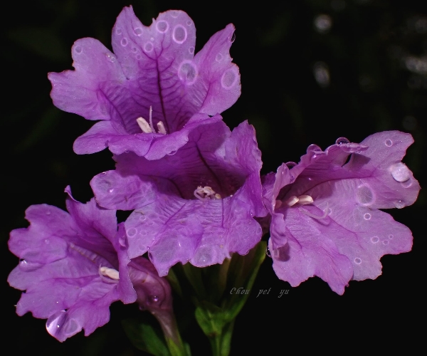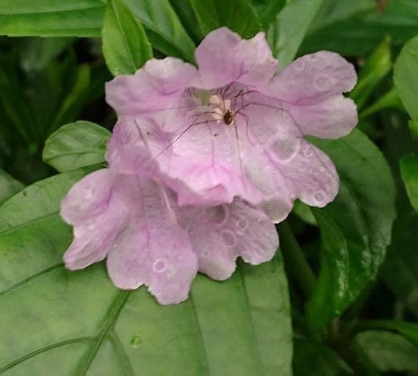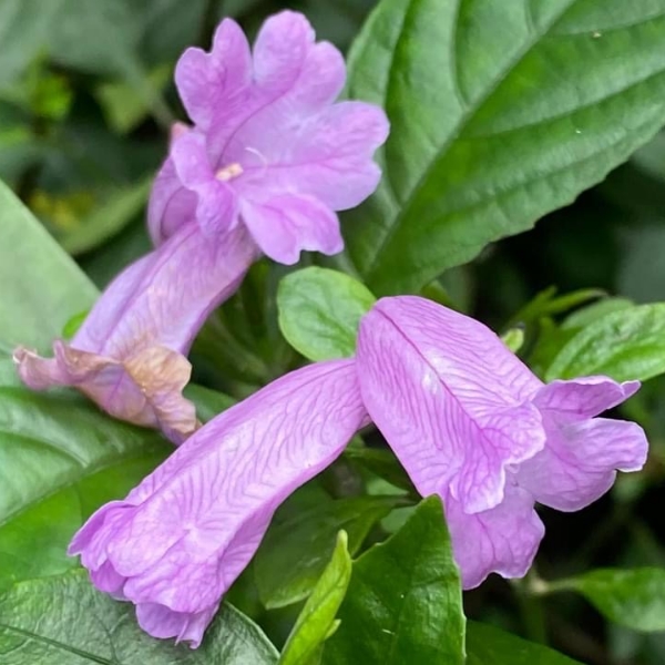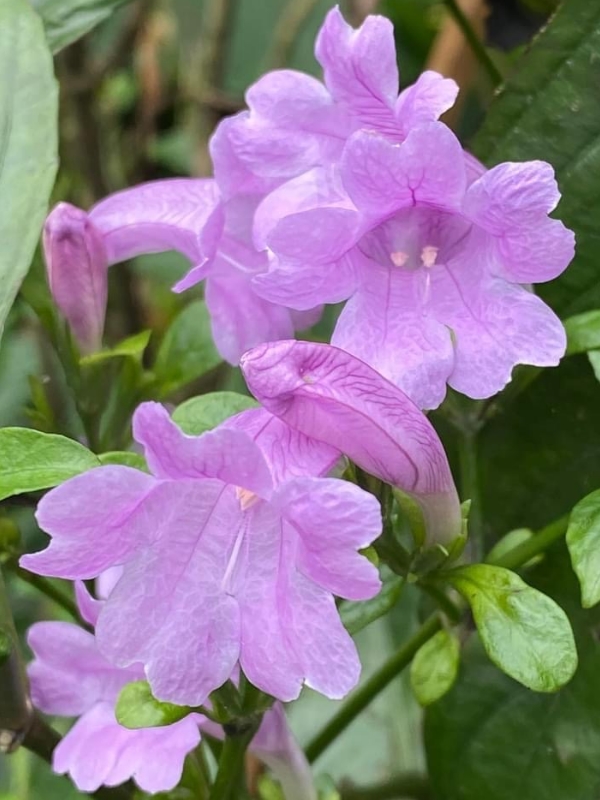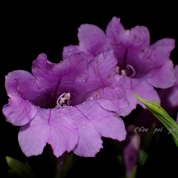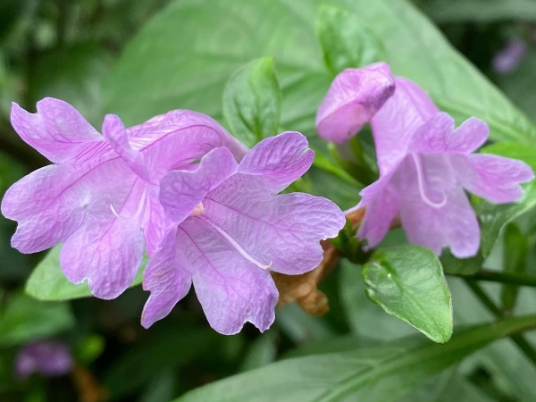 ![]() 上面照片:周佩玉拍攝 (花冠喇叭狀,花瓣5枚,淡粉紫色至紫色;雄蕊4枚,2強) |
