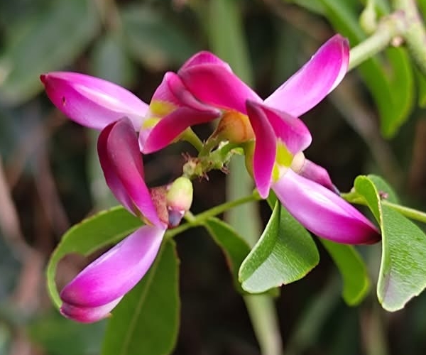 ![]() 上面照片:林美燕拍攝 (小花序為總狀花序,蝶形花冠,粉紅色至紫紅色) |