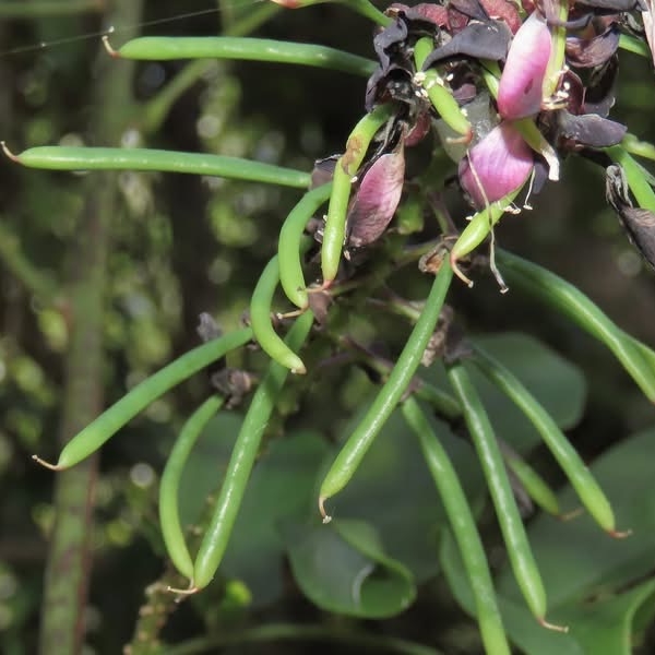 ![]() 上面照片:小花老師拍攝 (莢果線形,長10~20公分,有種子3~6枚) |