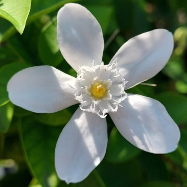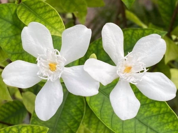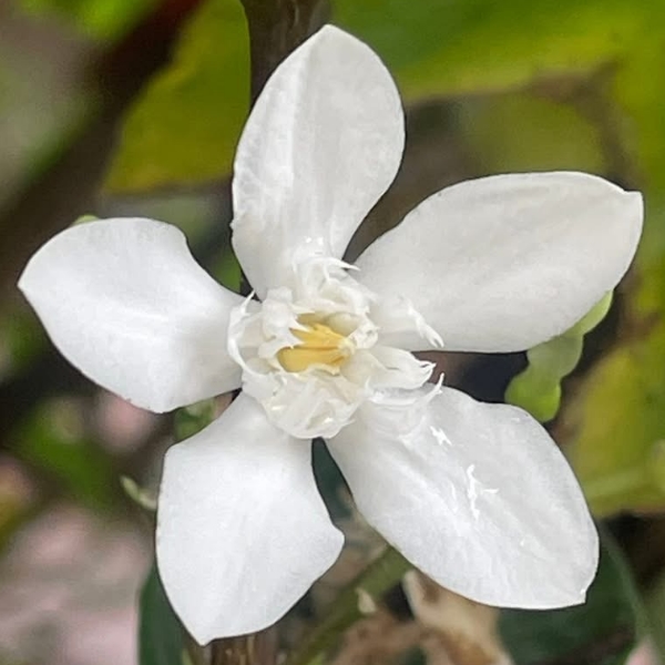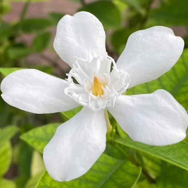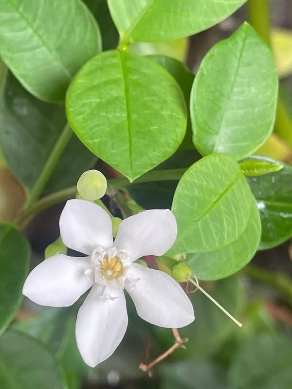 (栽培種;原產於斯里蘭卡;世界植物在線 POWO 附有照片;維基百科標名黃葉倒吊筆;香港柴娃娃植物網標名白絹梅 (花形與薔薇科的白鵑梅 Exochorda racemosa 相似,白絹梅可能是誤稱);常綠灌木,單葉對生,橢圓形至長卵形;總狀花序,腋生;花瓣5枚,白花,花徑約3~4公分,有白絹狀的副花冠,黃色雄蕊聚合包覆雌蕊;蓇葖果,長條形;果實形似吊掛的筆,而葉色偏黃,故有黃葉倒吊筆之稱)