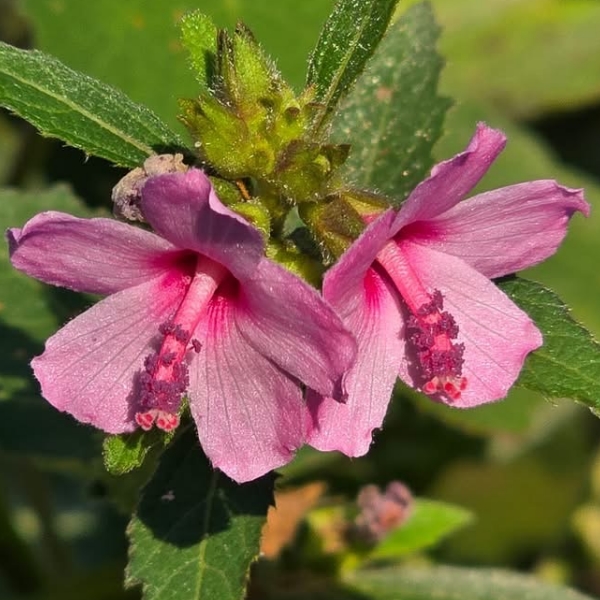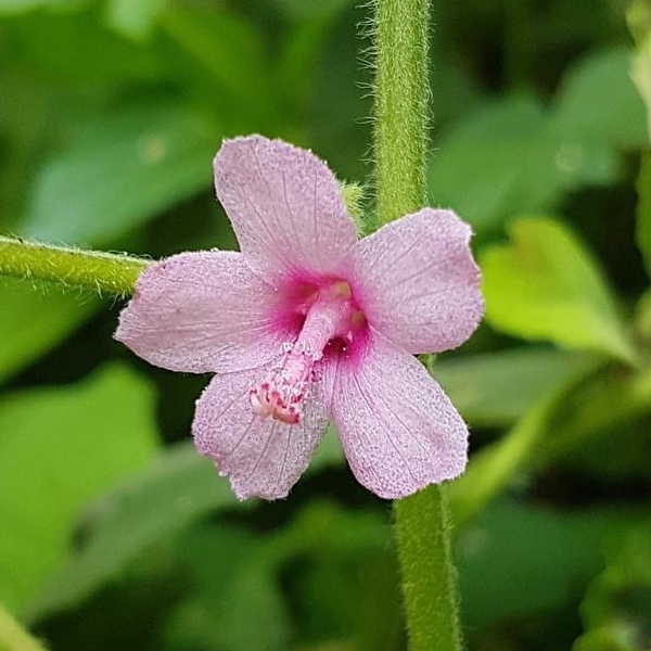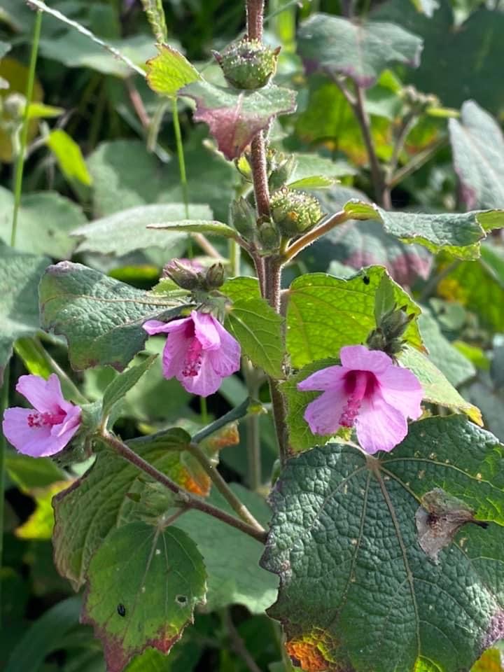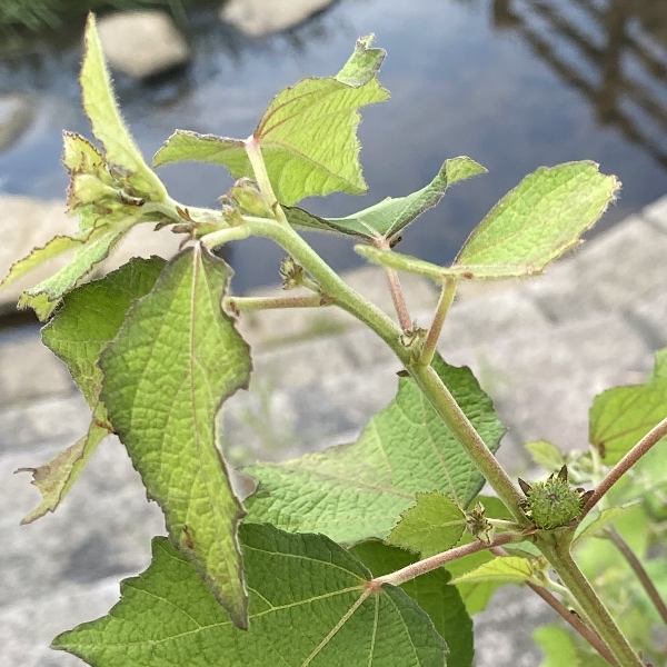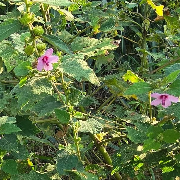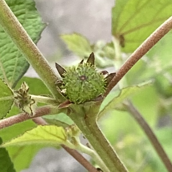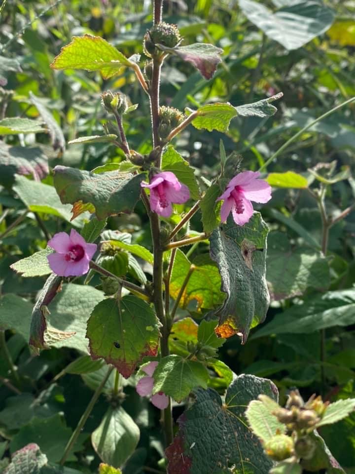 (原生種;原生於亞洲、非洲和美洲;台灣物種名錄標名野棉花,別名假棉花、紅虱母子、虱母子,附有照片;維基百科標名地桃花;半灌木;全株被毛;單葉互生,圓形、卵形至淺裂掌形,葉柄細長(2~4公分);花序腋生,單生或成聚繖花序;花瓣5枚,粉紅或白色;蕊柱合生,雄蕊多數,雌蕊花柱10叉;花萼有2層,內外層長度相當;蒴果5瓣狀,密被棘刺,棘刺末端有星狀的小倒鉤刺,可藉由動物沾粘傳播種子)