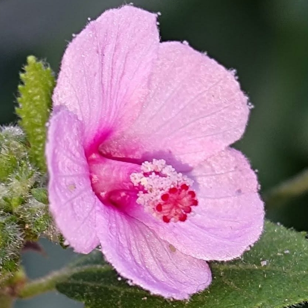 ![]() 上面照片:林美燕拍攝 (花瓣5枚,粉紅或白色;蕊柱合生,雄蕊多數,雌蕊花柱10叉) |