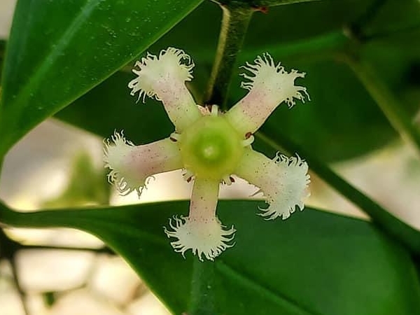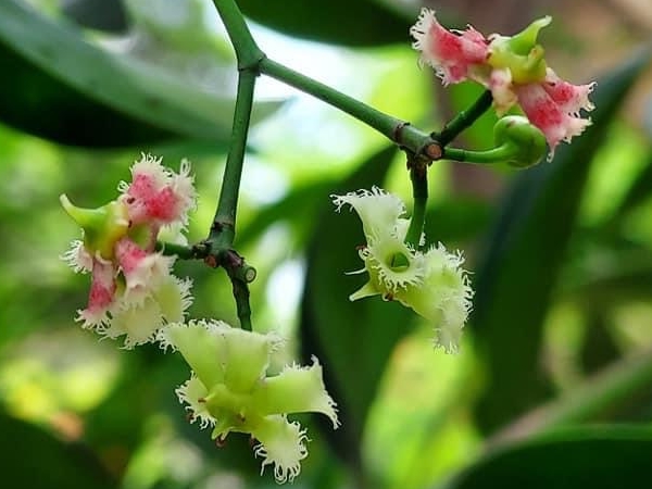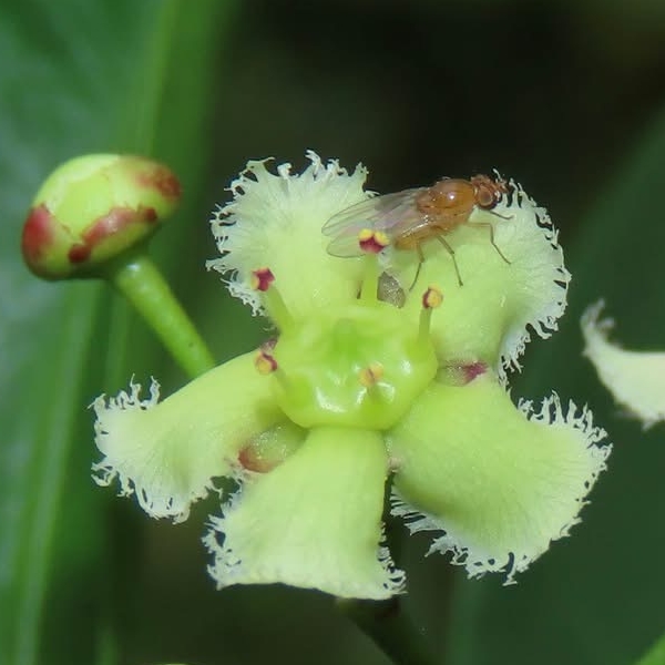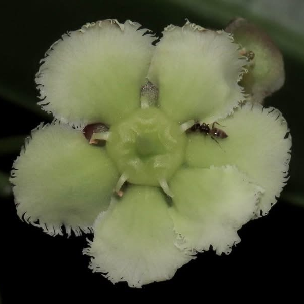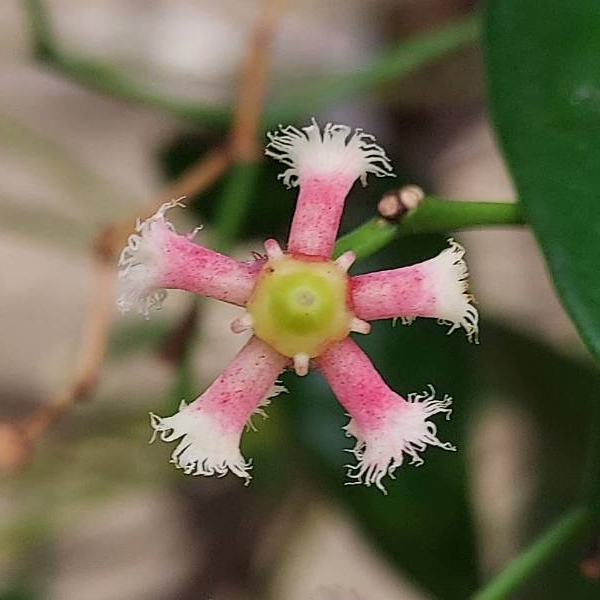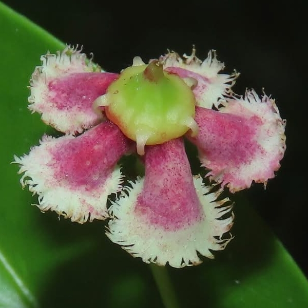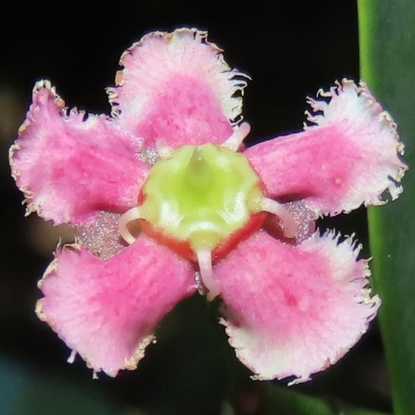 ![]() 上面照片:小花老師拍攝於台北植物園 (花瓣5枚,先端流蘇狀,初發淡綠色,後轉粉紅色;雄蕊5枚) |