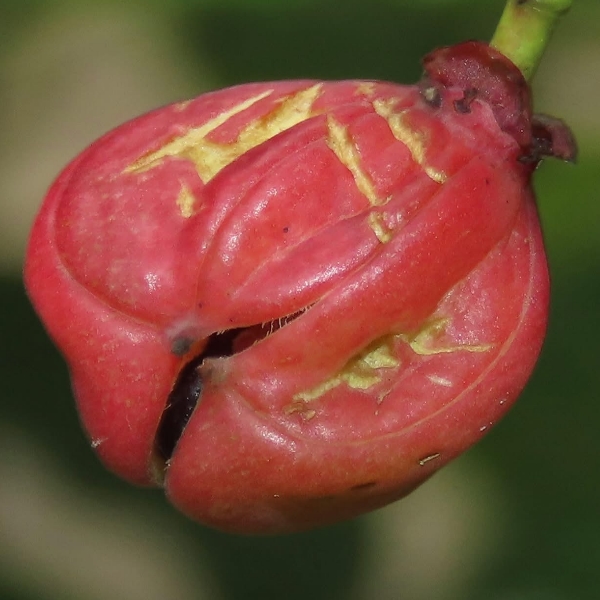 ![]() 上面照片:小花老師拍攝於台北植物園 (蒴果倒卵形,5瓣狀,成熟紅色) |