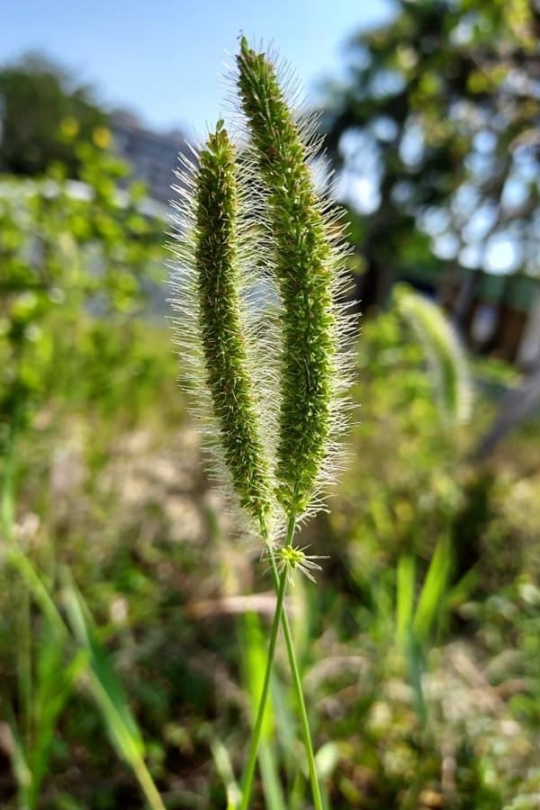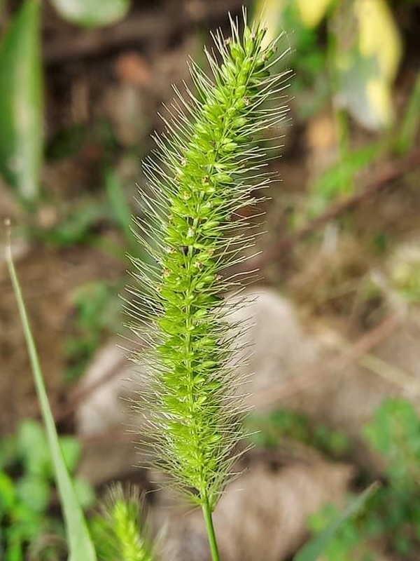 (原生種;世界植物在線 POWO 附有照片,標示原生於非洲、歐洲、亞洲和澳洲(包含台灣);台灣物種名錄標名倒刺狗尾草,附有照片,標示歸化種;穗毛具有倒鉤刺,故名倒刺狗尾草,唯肉眼無法辨識;倒刺狗尾草的長穗,常見相互勾纒)