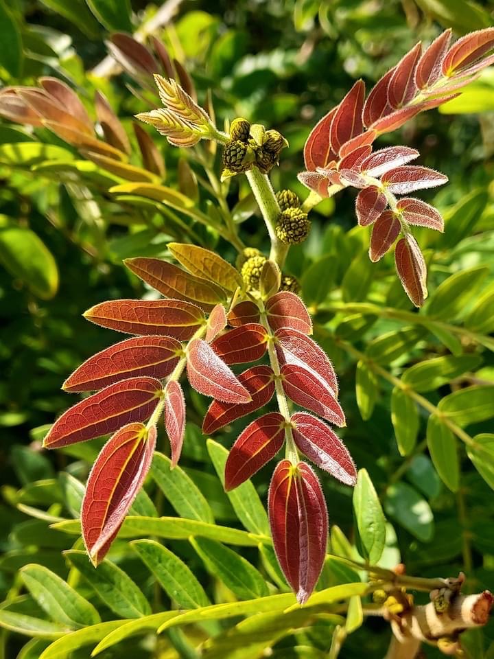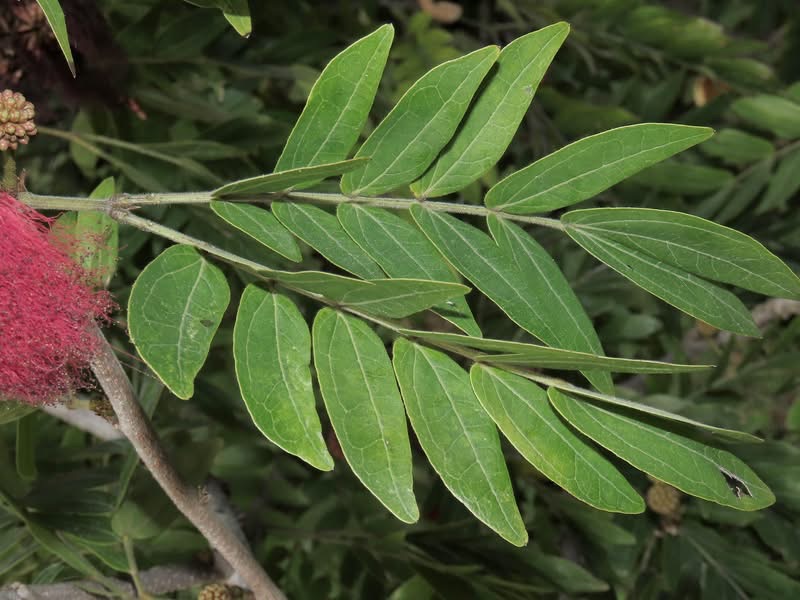 ![]() 上面照片:林美燕拍攝 (二回偶數羽狀複葉,互生;小羽片1對,小羽片的小葉5~7對,歪長卵形) |