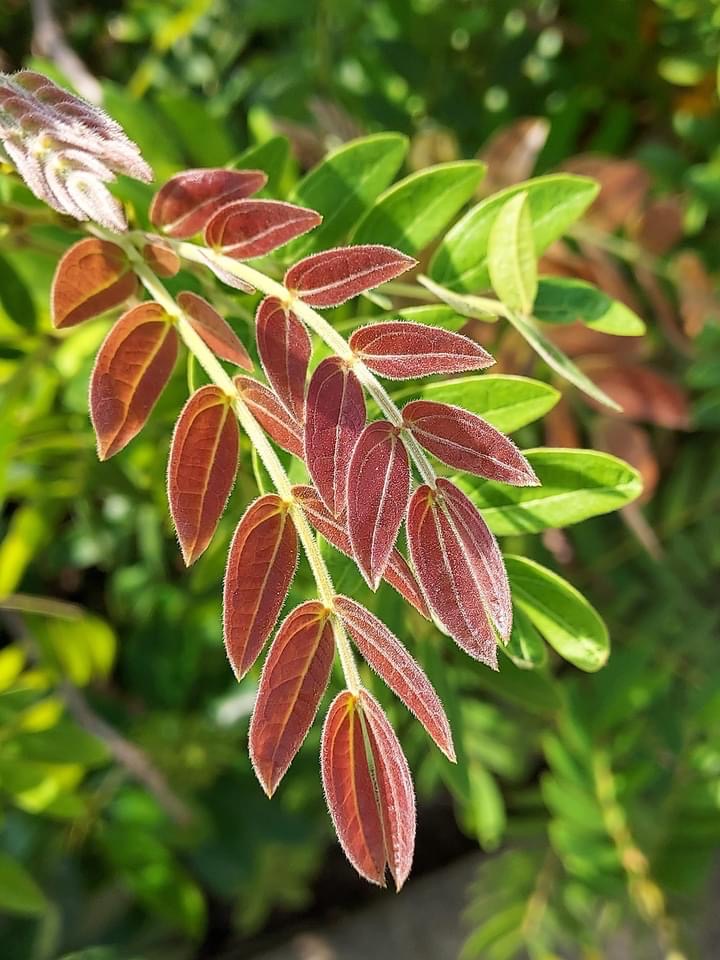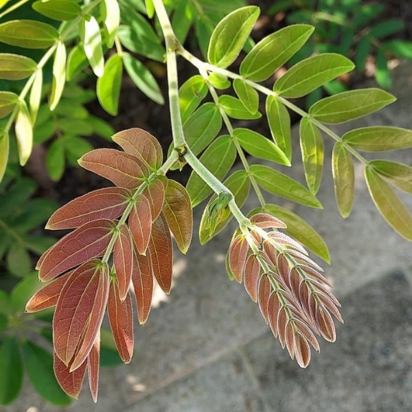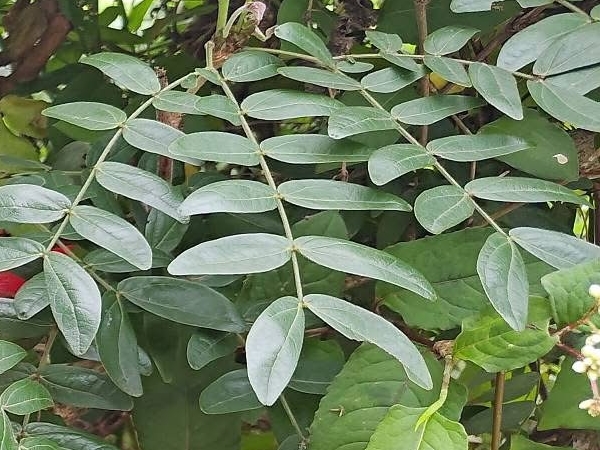 ![]() 上面照片:陳維琪拍攝 (二回偶數羽狀複葉,互生;小羽片1對,小羽片的小葉5~7對,歪長卵形) |
