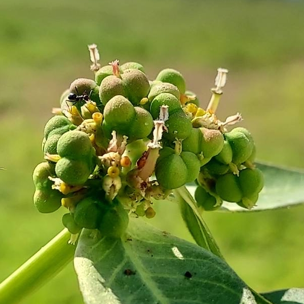 (歸化種;原生於中、南美洲;草本;單葉互生,卵形、長卵形至披針形,或葉片兩側淺凹裂狀;大戟花序,頂生;雌花伸出於杯狀苞外,柱頭3叉,每叉先端再2叉;每個杯狀苞具蜜杯1枚;蒴果3瓣狀)