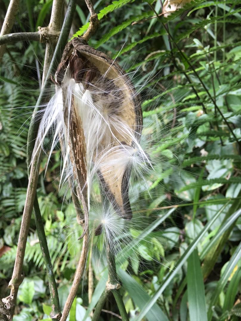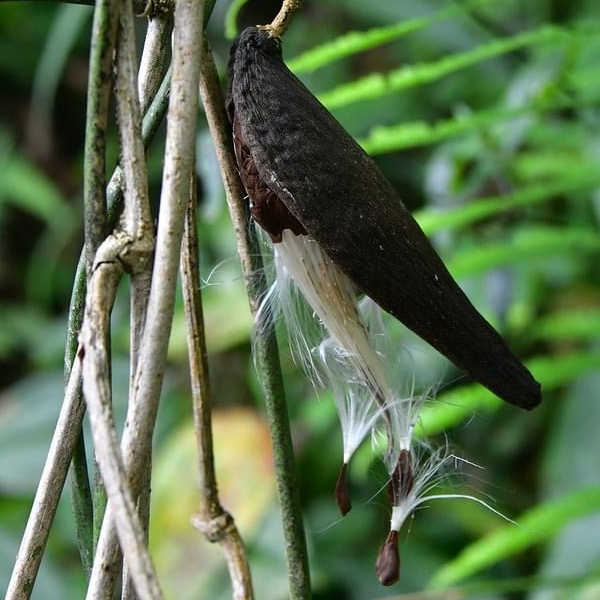 (原生種;原生於台灣和中國大陸;台灣物種名錄標名台灣牛彌菜;纏繞性木質藤本;全株密被細絨毛;莖右旋纏繞;單葉對生,闊卵形;繖形花序,腋生,呈球狀;花瓣5枚,白色至淡黃色;蓇葖果形似芒果;種子長卵形,扁平,較尖一端具細長冠毛)