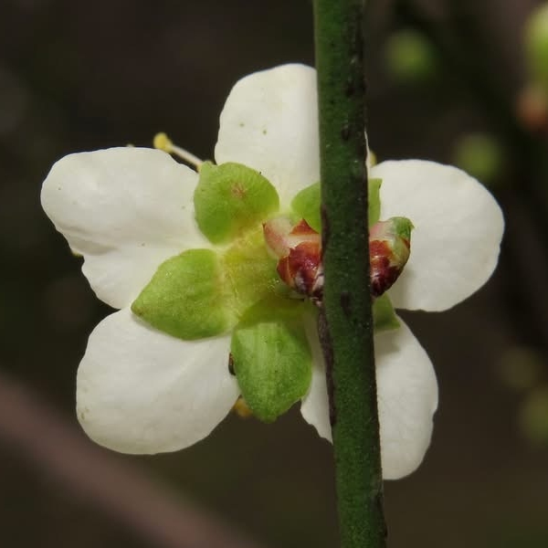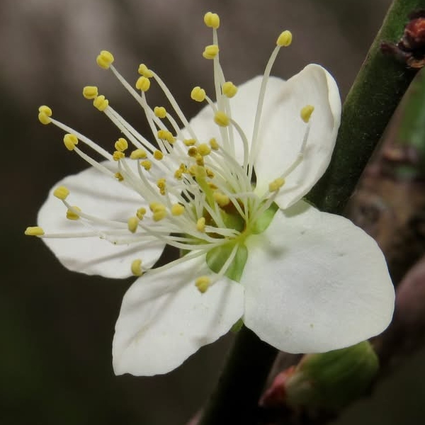 (歸化種;原生於中國大陸;落葉小喬木;老莖樹皮深褐色,小枝綠色,光滑無毛;單葉互生,卵形至倒卵形,細鋸齒緣;花瓣5枚(或重瓣),近圓形,白色至粉紅色,花梗短於1公分;花萼卵形至近圓形;核果卵形,密被柔毛;花萼綠色品種稱為綠萼梅 (Prunus mume f. viridicalyx、Armeniaca mume var. mume f. viridicalyx、白梅))