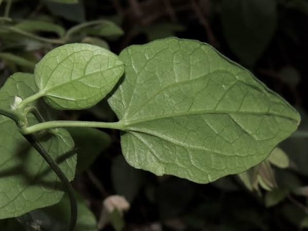 (歸化種;原生於中國大陸至印度一帶及菲律賓;多年生纏繞性草本;右旋纏繞;單葉互生,卵形;花朵單生葉腋,花梗細長;苞片2枚,卵形;花冠筒狀,花瓣5枚,白色,具芳香;蒴果具長喙)