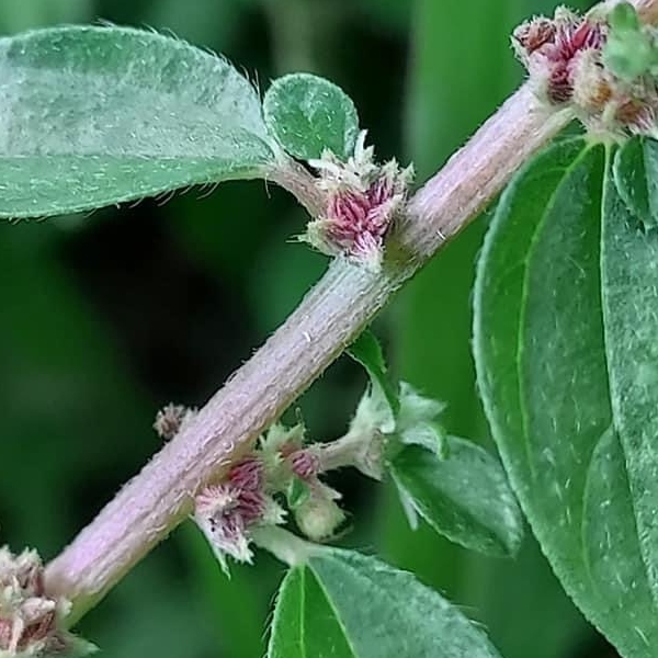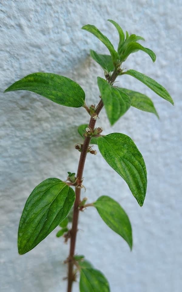 (原生種;多年生草本至半灌木,基部分枝,老莖木質化;全株密被絨毛;單葉對生或互生,卵圓形、卵形至長卵形,全緣,兩面密生柔毛;花序簇生葉腋,無柄;單性花,雌雄同株,同花序或異花序;雌花細小,花柱白色,長條狀,有絨毛;雄花具雄蕊4枚;瘦果卵形,具多條稜脊,成熟褐紅色;有些葉片出現黃斑,可能是罹患霧水葛金黃嵌紋病毒 Pouzolzia golden mosaic virus)