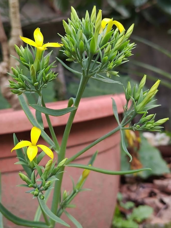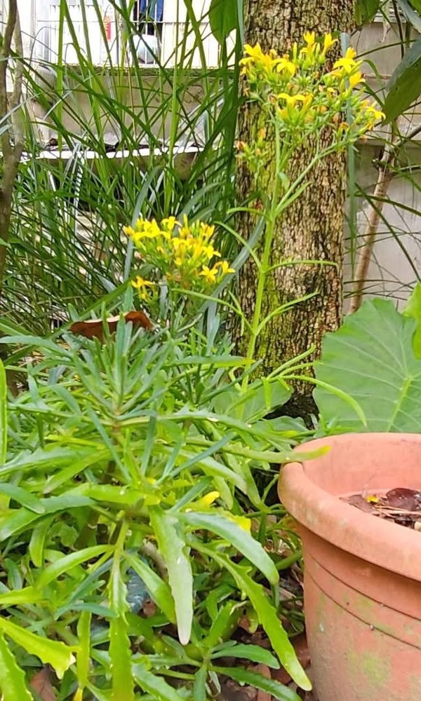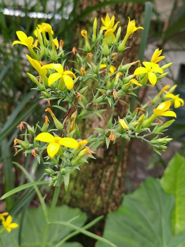 (栽培種;伽讀茄子的茄;癀讀黃;Kalanchoe ceratophylla 含2個變種,一個是小燈籠草 Kalanchoe ceratophylla var. ceratophylla,台灣為原生種,另一個變種原生於越南;台灣物種名錄查無此學名及中文名;維基百科標名伽藍菜,別名雞爪三七、裂葉落地生根、小燈籠草)