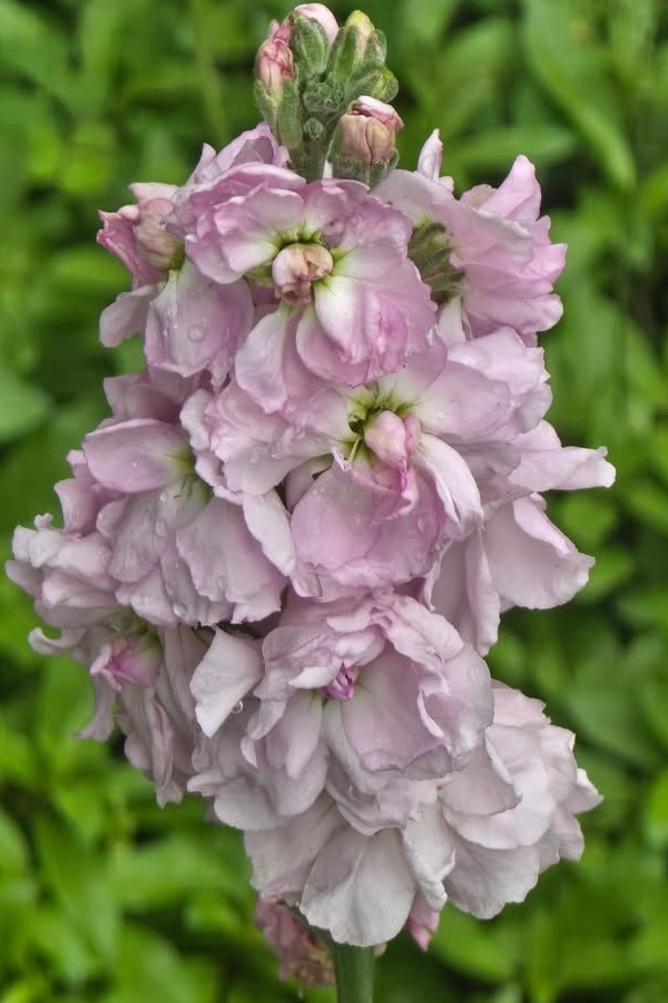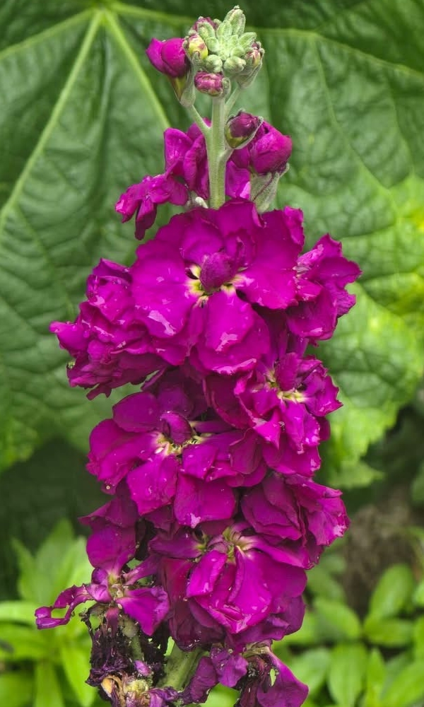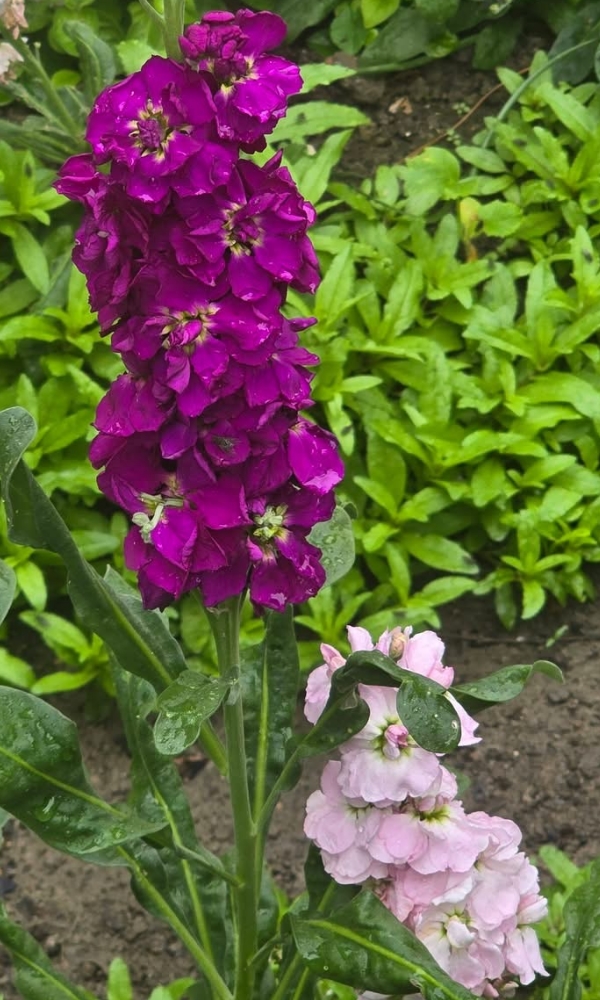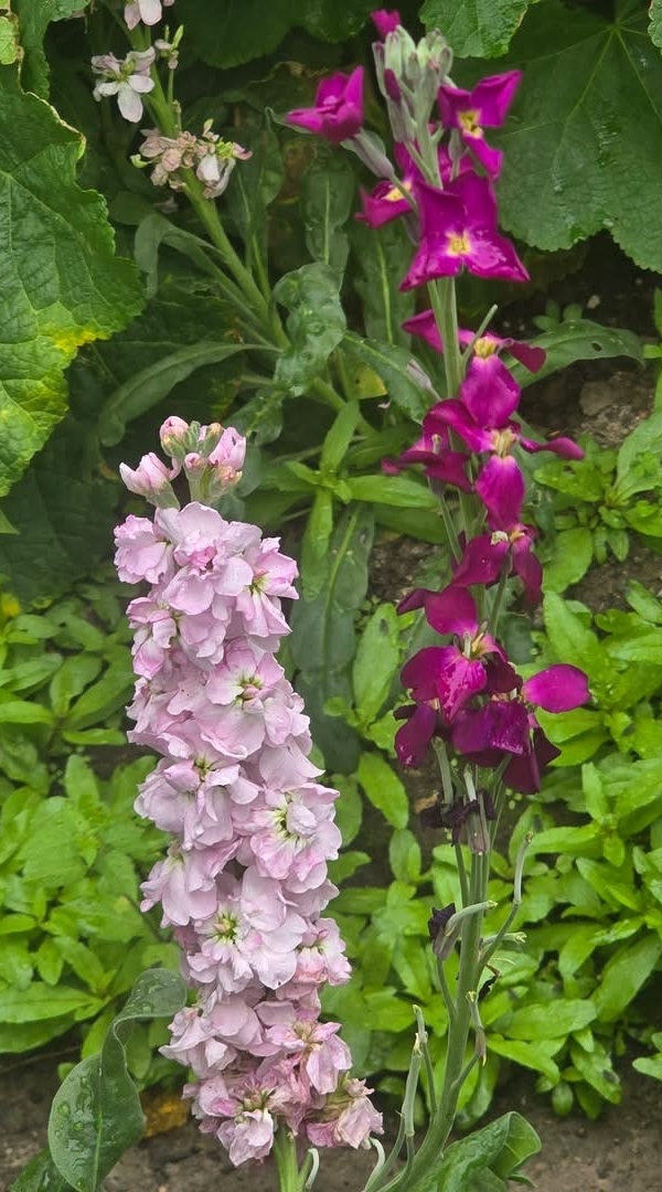(栽培種;原生於南歐;二年生或多年生草本;莖直立,多分枝,基部稍木質化;單葉互生,倒披針形,全緣;總狀花序,頂生或腋生;有單瓣和重瓣,花色有紫紅、淡紅、白色等色;長角果棒狀)