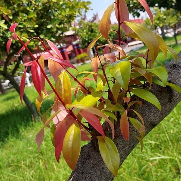 ![]() 上面照片:陳維琪拍攝 (樹頭或樹幹常見鮮紅色新芽和新葉,由紅轉綠) |