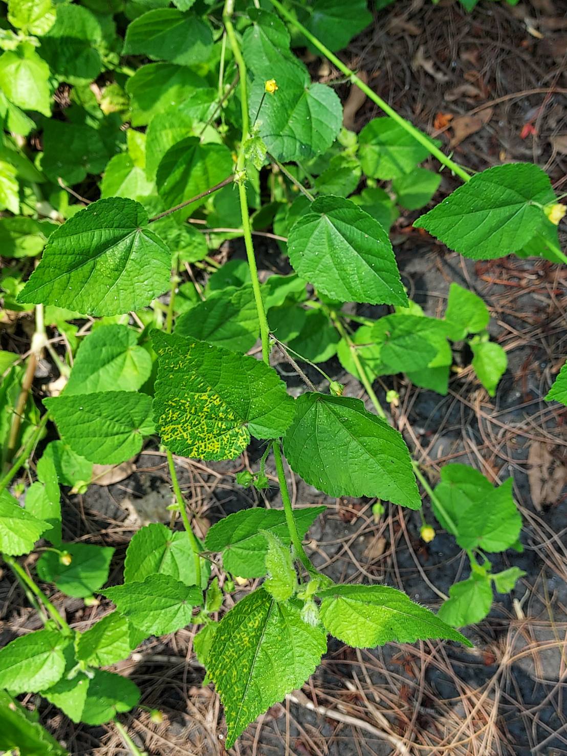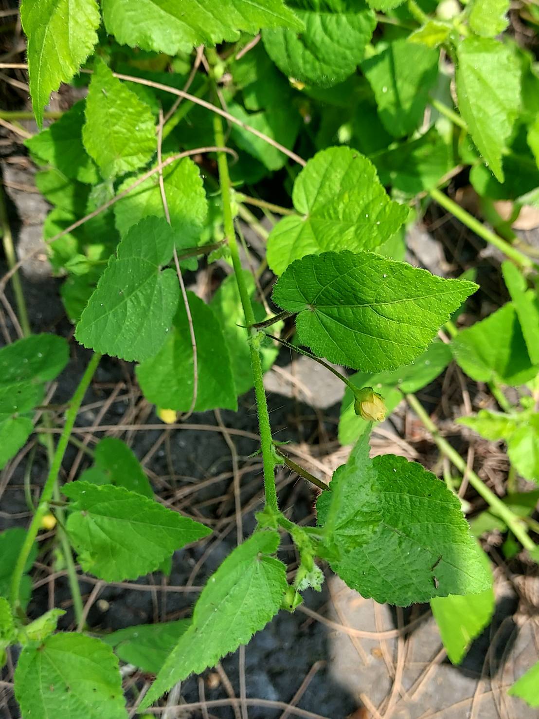 (原生種;原生於台灣、中國大陸至阿拉伯半島東南部;世界植物在線 POWO 標示 Sida veronicifolia = Sida cordata,皆為有效學名,附有照片;香港柴娃娃植物網標名長梗黃花稔;半灌木草本;匍匐或斜上生長;小枝纖細,被星狀毛並生長柔毛;單葉互生,心形至圓心形,鋸齒緣,長1~5公分,兩面被細毛;葉柄細長,長1~3公分;花序腋生,常單生或數朵成具葉的總狀花序;花梗纖細,長2~4公分(花後延長),中部以上具節,疏被星狀毛和長柔毛;花瓣5枚,黃色;雌蕊5叉;花萼5枚,長約0.5公分,疏被長柔毛;蒴果近球形,5瓣狀,種子上端無芒刺)