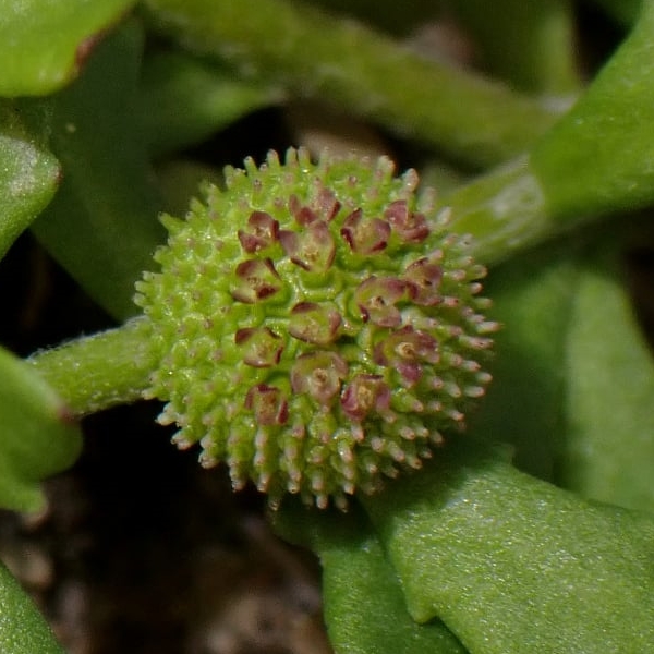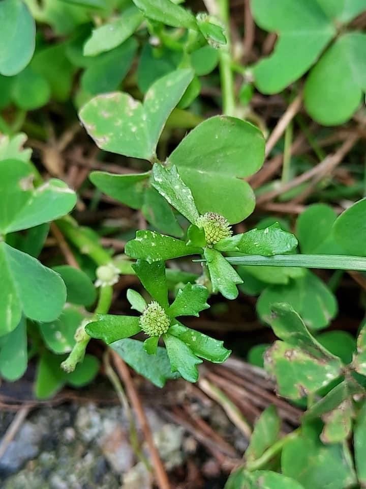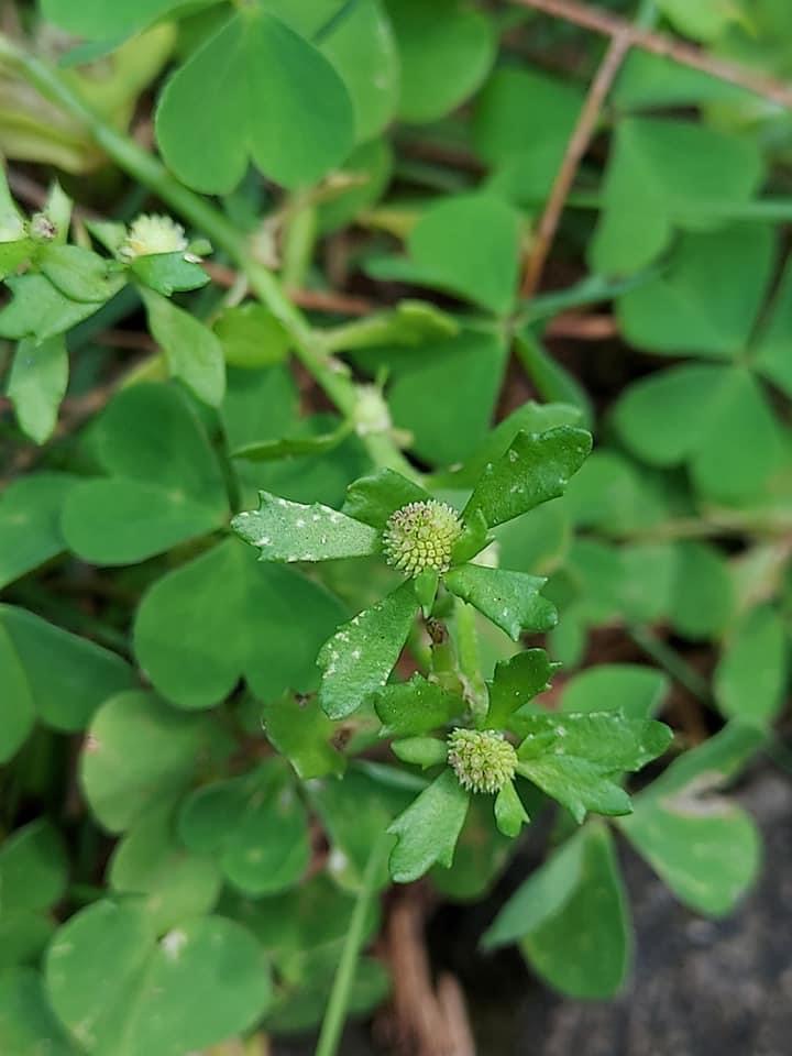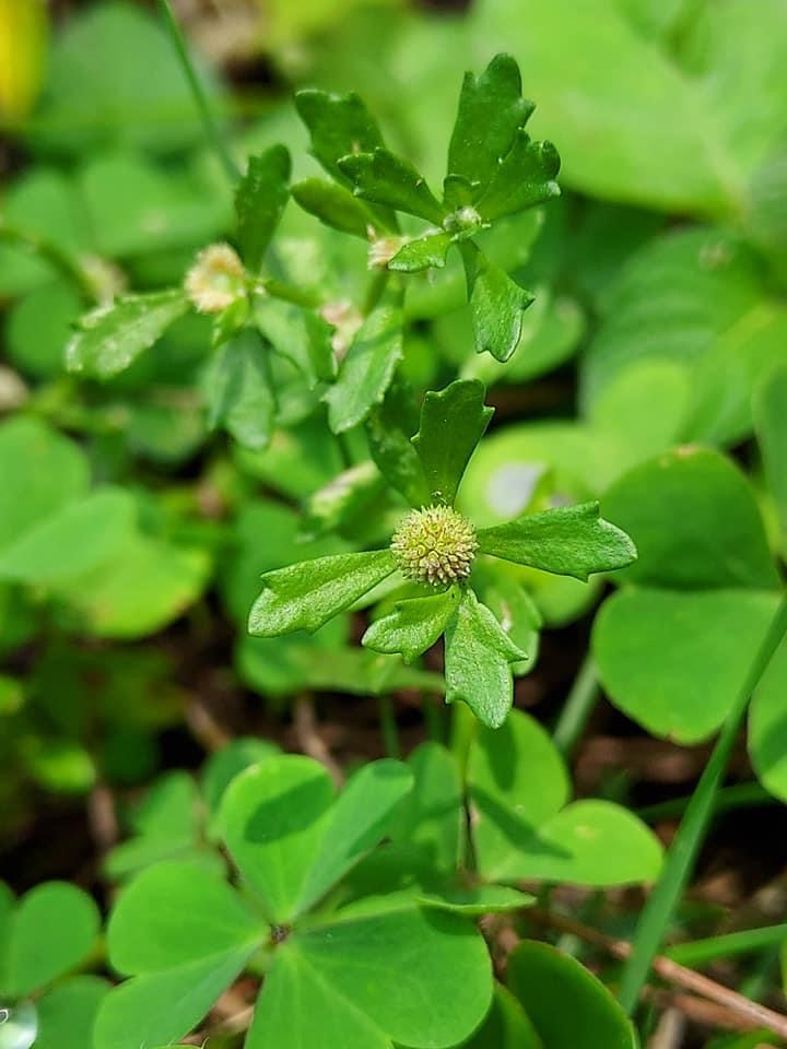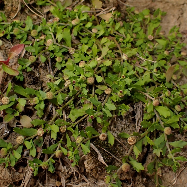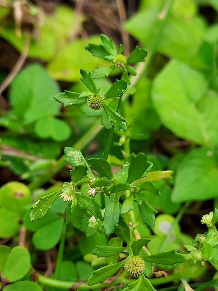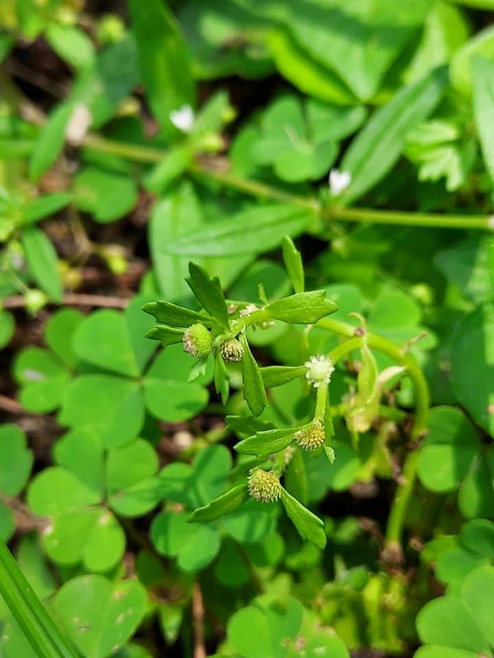 (原生種;原生於台灣、日本、中國大陸至印度一帶;一年生匍匐性草本;莖節生根;單葉互生,倒長卵形,上部邊緣具2~3枚不規則的疏齒,無柄;頭狀花序,扁球形,單生於葉腋,直徑不到0.5公分,無花序梗或極短;雌花位於頭狀花序的外圍,數量較多;兩生花位於頭狀花序的中央,數量較少,花冠管狀,花瓣4枚;瘦果圓柱形)